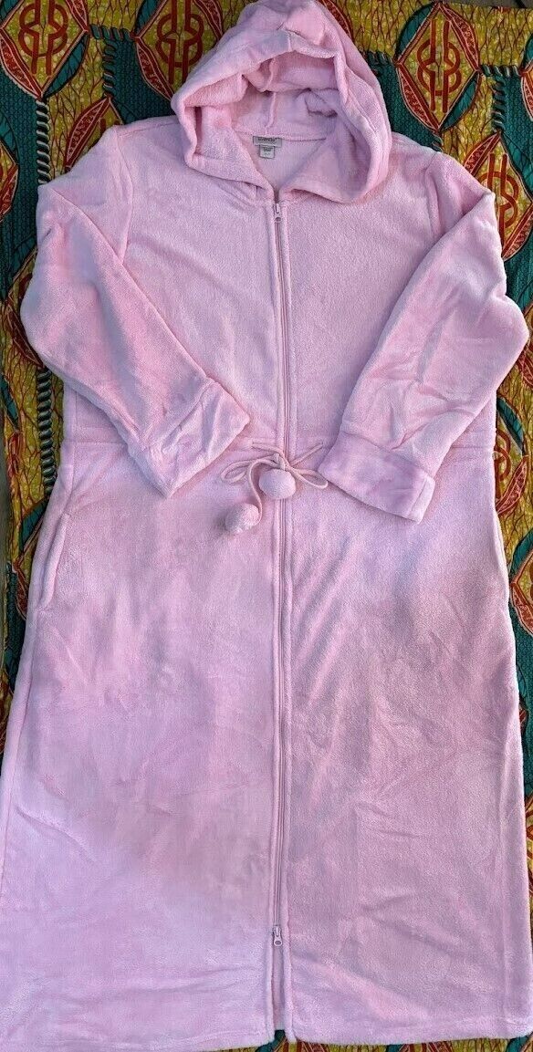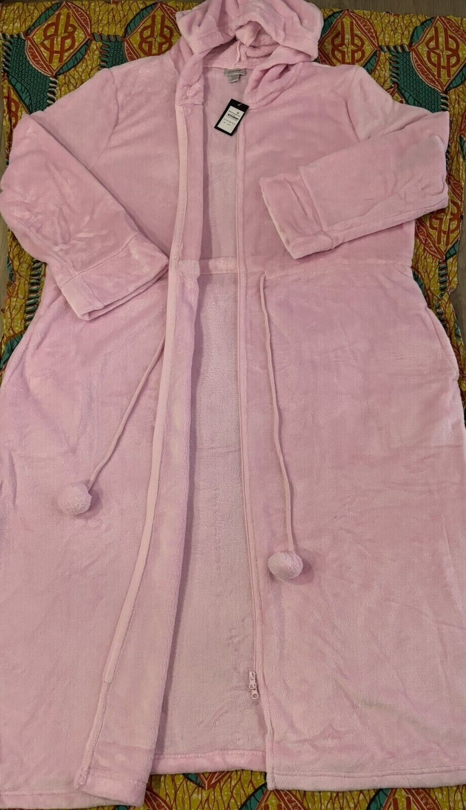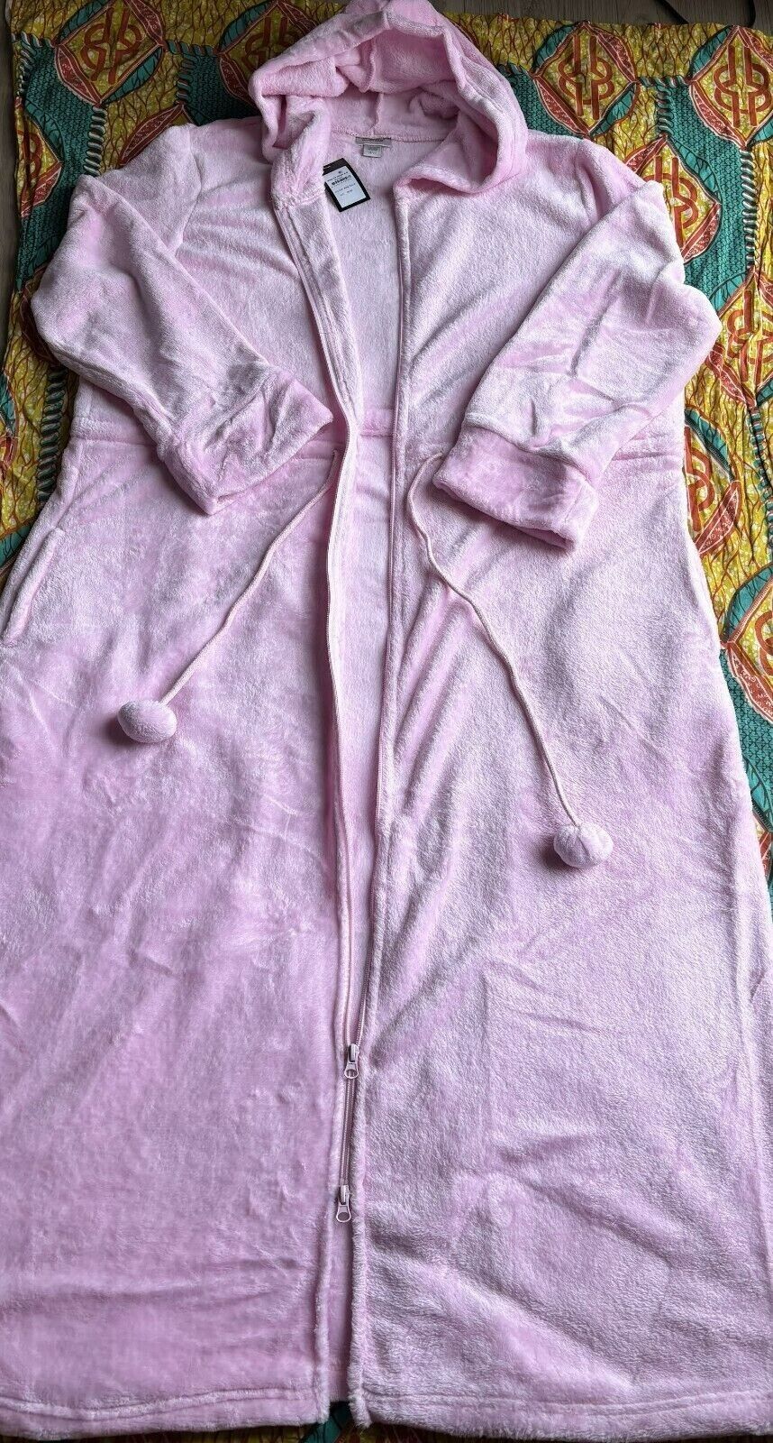 Avenue Plus Size Pink Tulle Zip Front Plain Hooded Robe Size 18/20