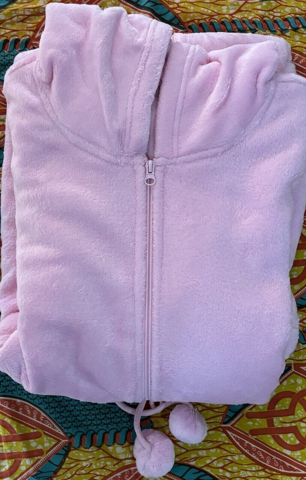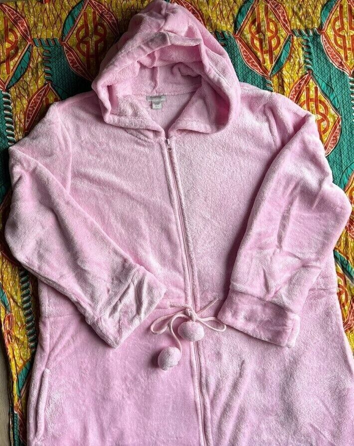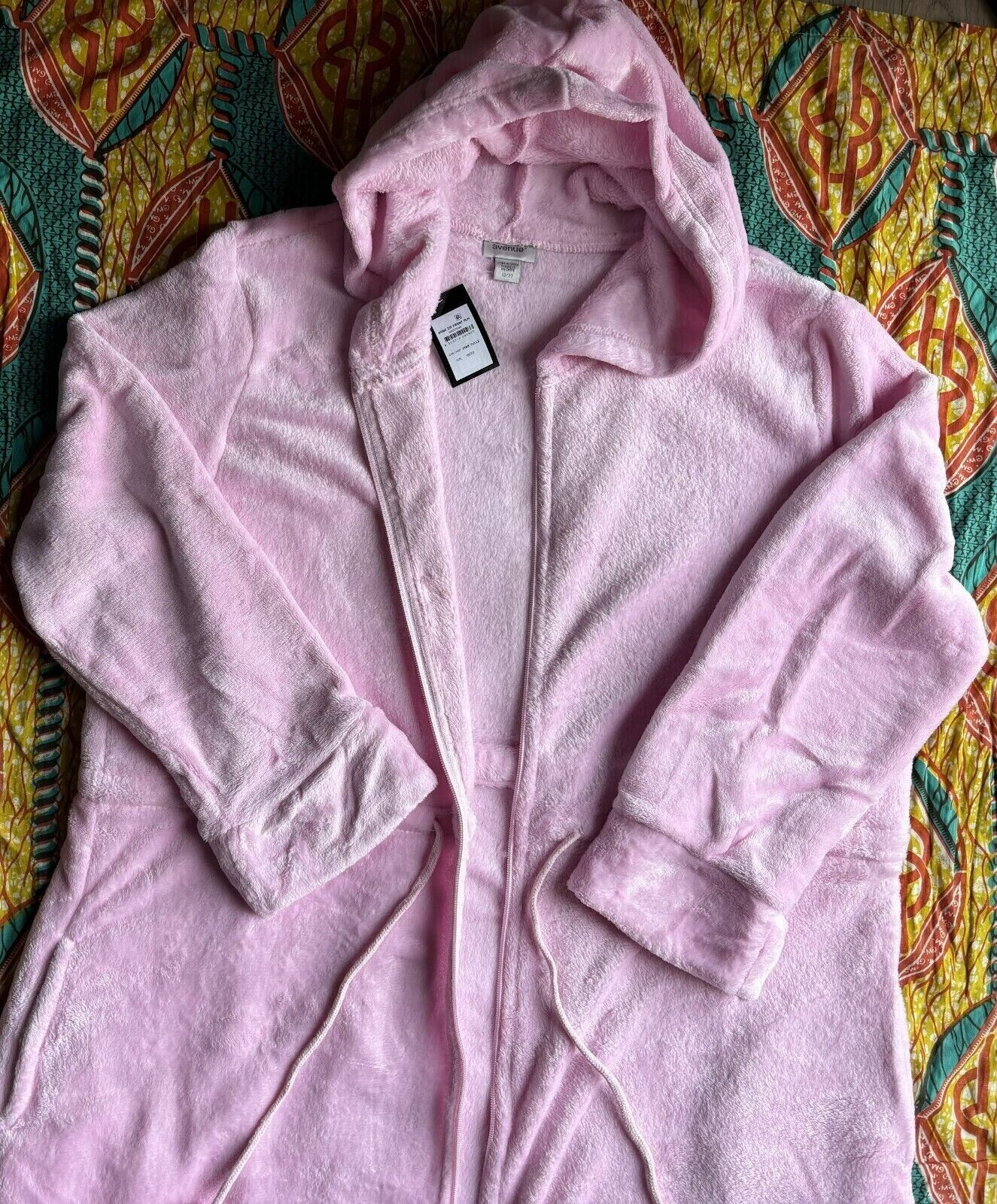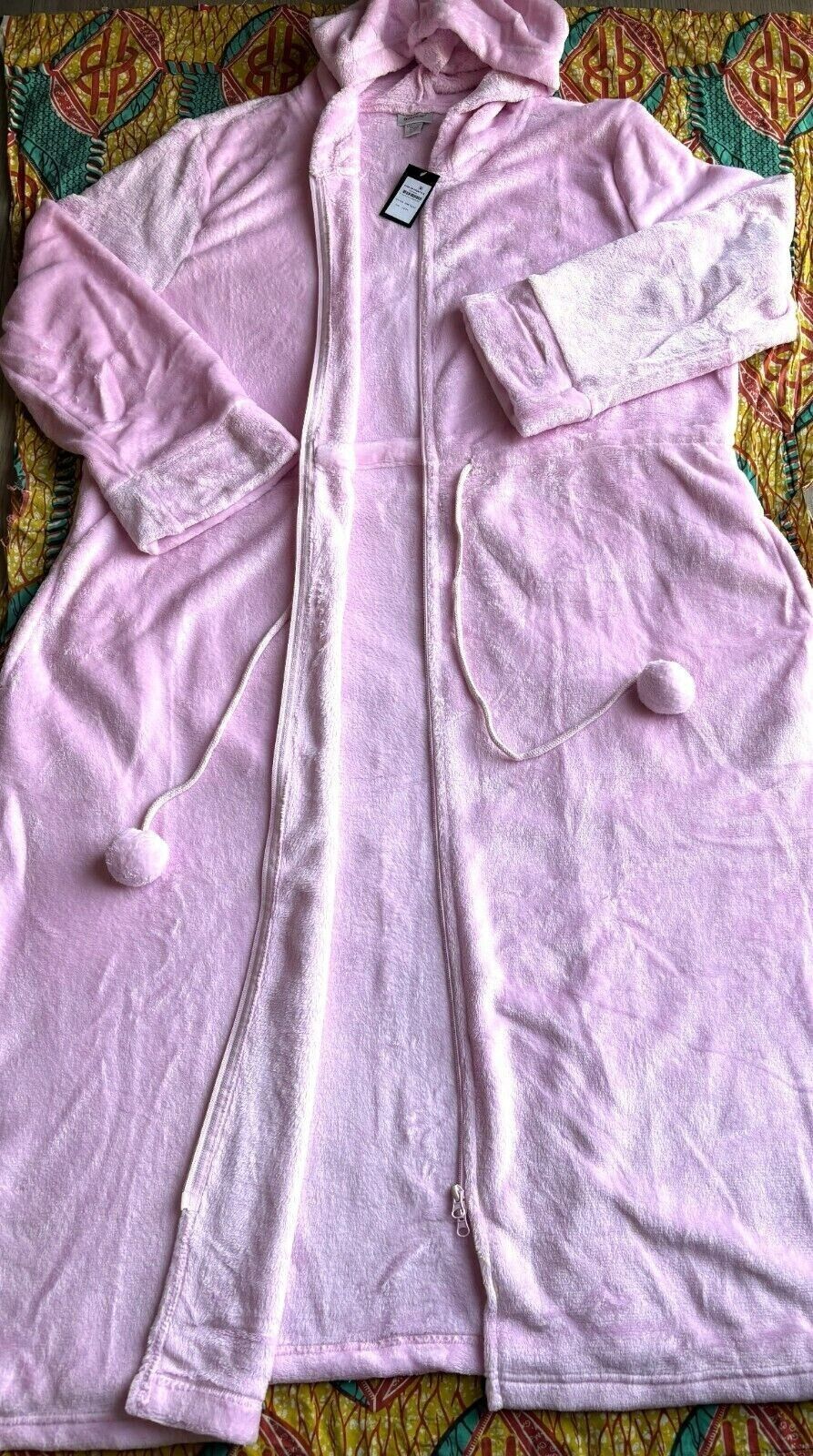 Avenue Plus Size Pink Tulle Zip Front Plain Hooded Robe Size 18/20