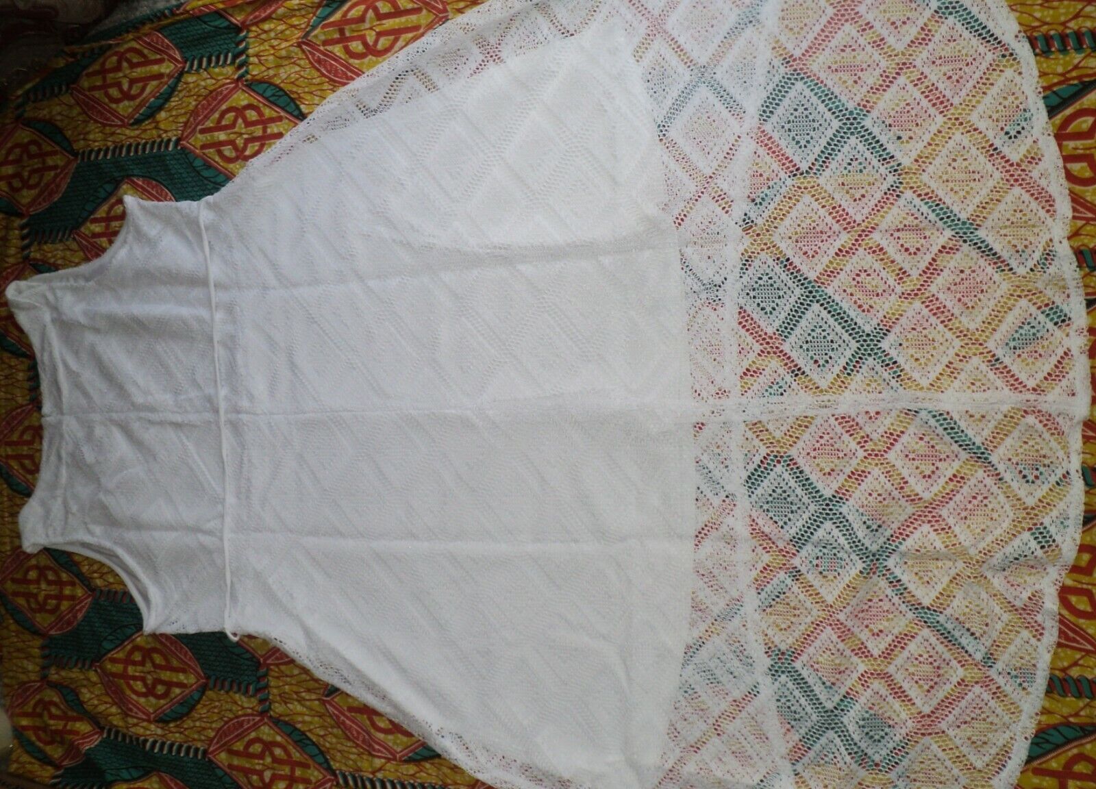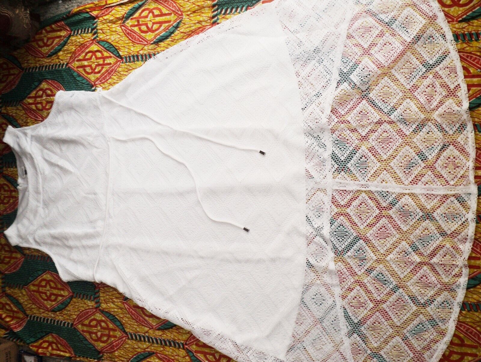 Plus size crochet or lace hi lo maxi dress by Avenue. Dress with a tie at the waist and a hi lo hemline. Sleeveless. Back zipper. Removable belt. Partial lined. Bust: 44”. Waist: 40”. Shoulder to base 41” long at the front; Shoulder to base 531/2” long at the back. Body: 100% Polyester/Lining: 100% Polyester. Hand wash. Imported. Brand new in bag with tag. Color White. Size 18/20. Original: $65.00