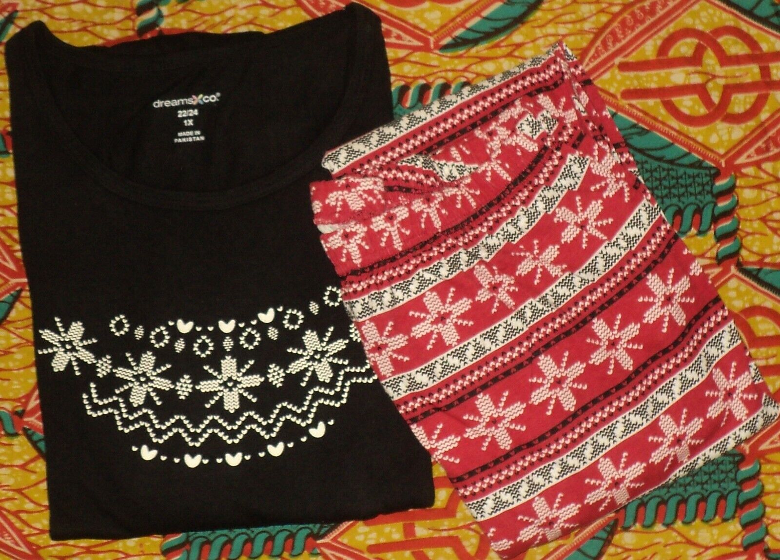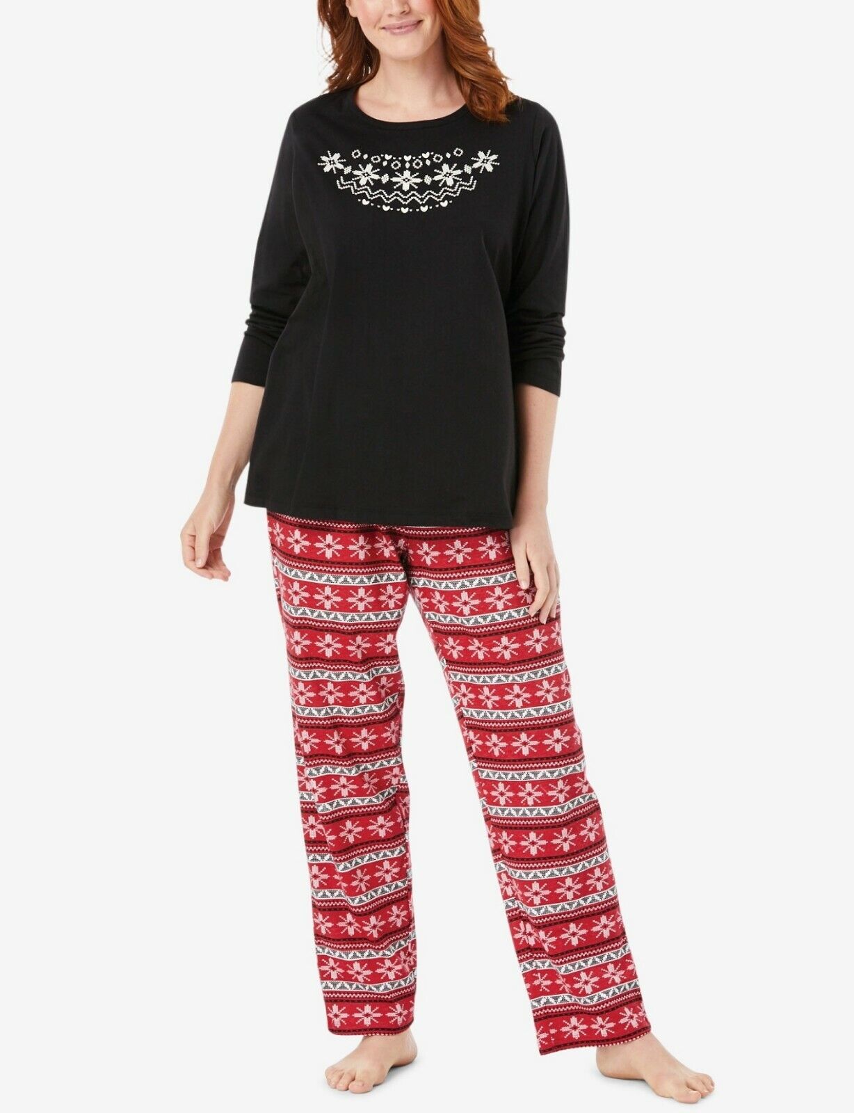 Dreams & Co. Plus Size Classic Red Fair Isle Long Sleeve Knit Pajama Set Size 1X