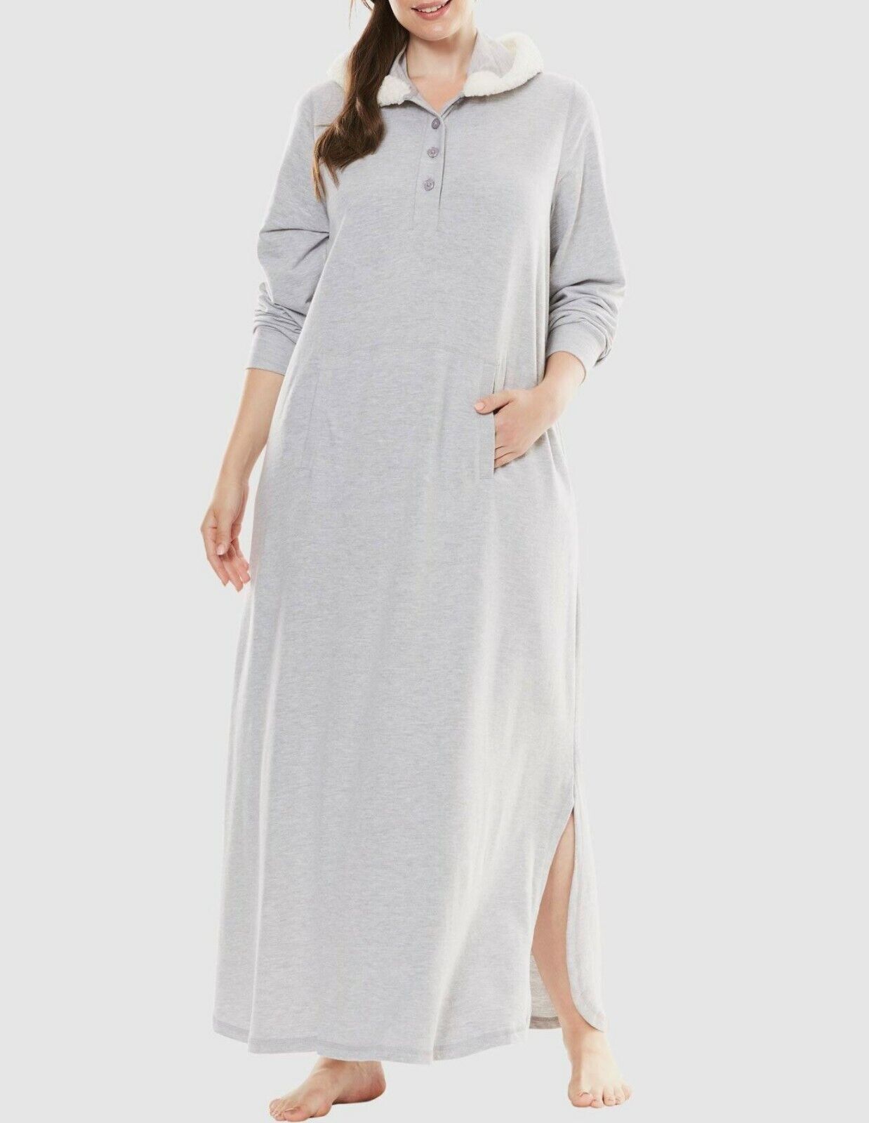 Dreams & Co. Plus Size Heather Grey Long Sleeves Hooded Lounger Size L(18/20)