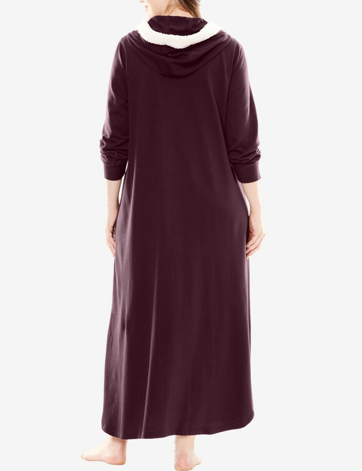 Plus size long hooded lounger by Dreams & Co. Sherpa-lined trimmed at the base