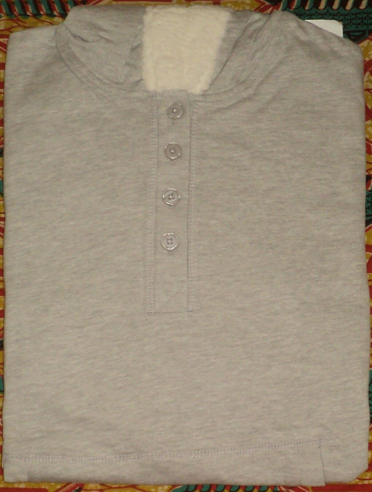 front, long sleeves, side slit. Bust: 49”. Shoulder to base 51" length .Imported. 95% cotton/5% polyester. Machine washable. Sherpa or Faux fur 100% polyester. Brand new in bag