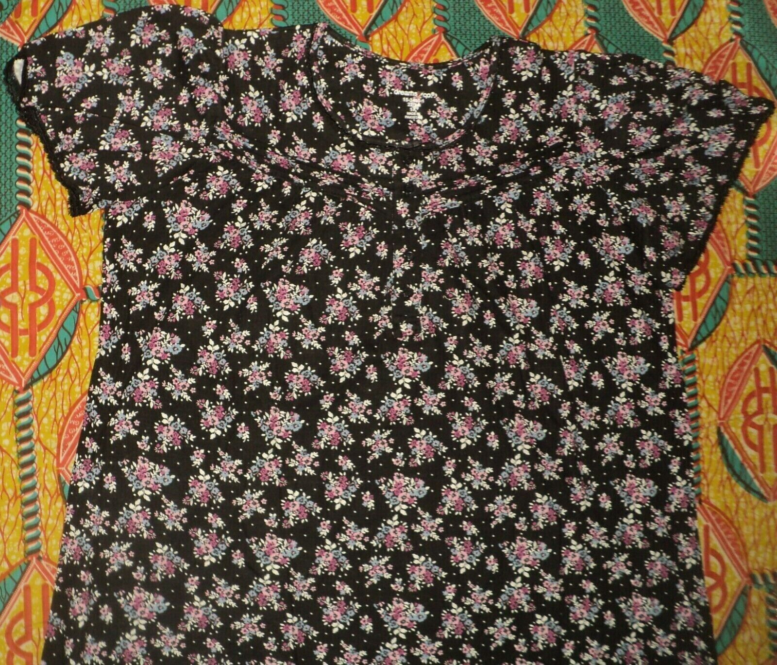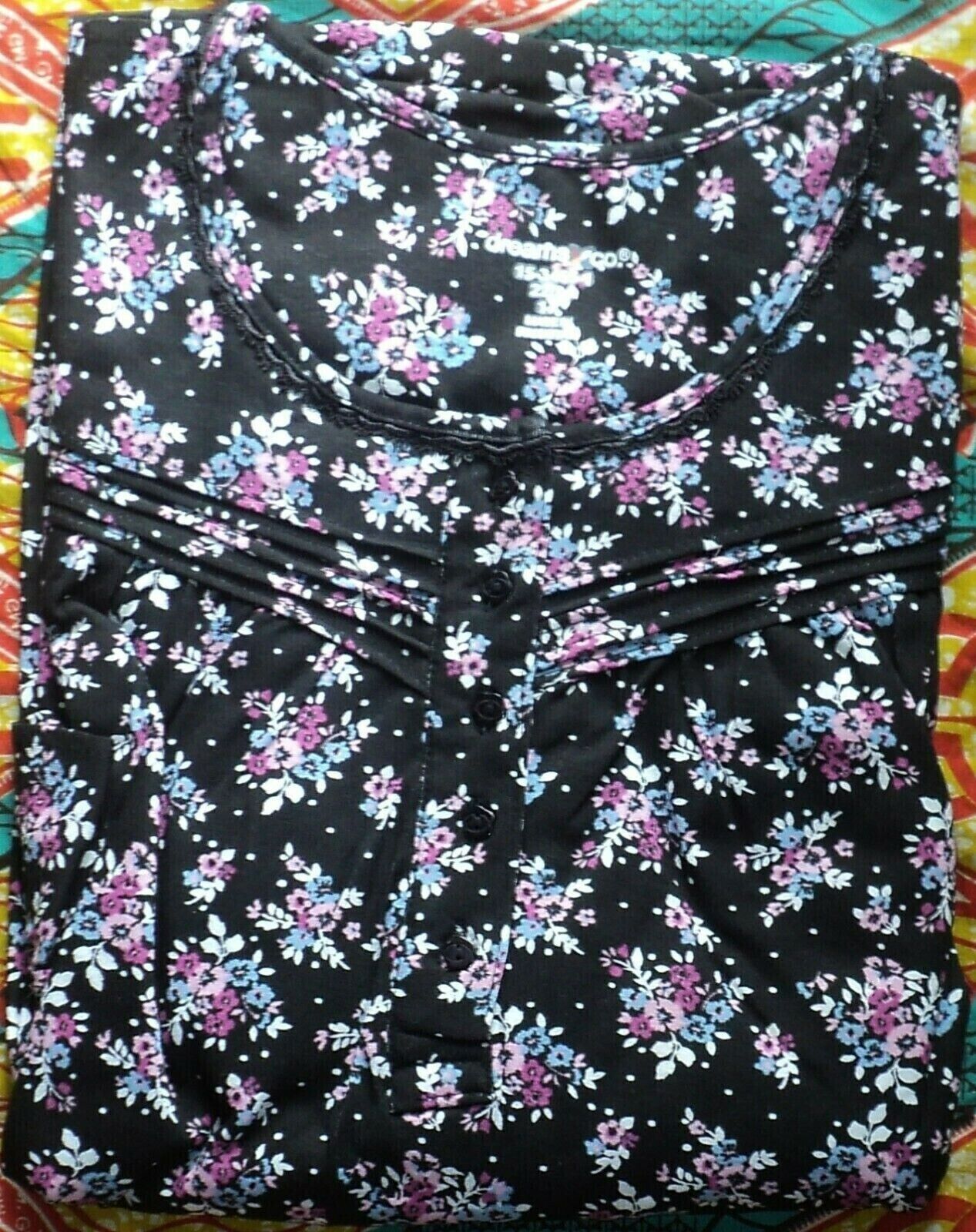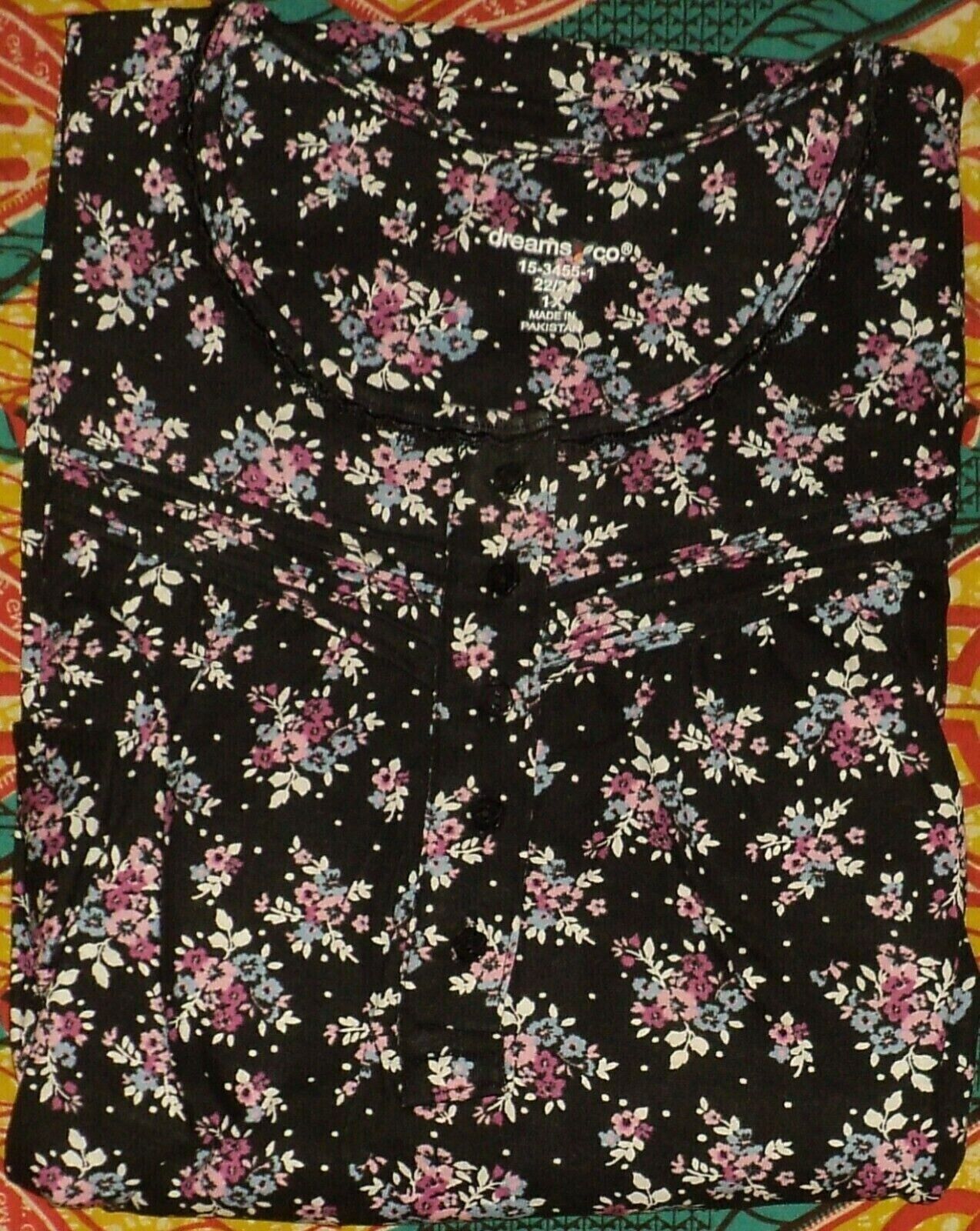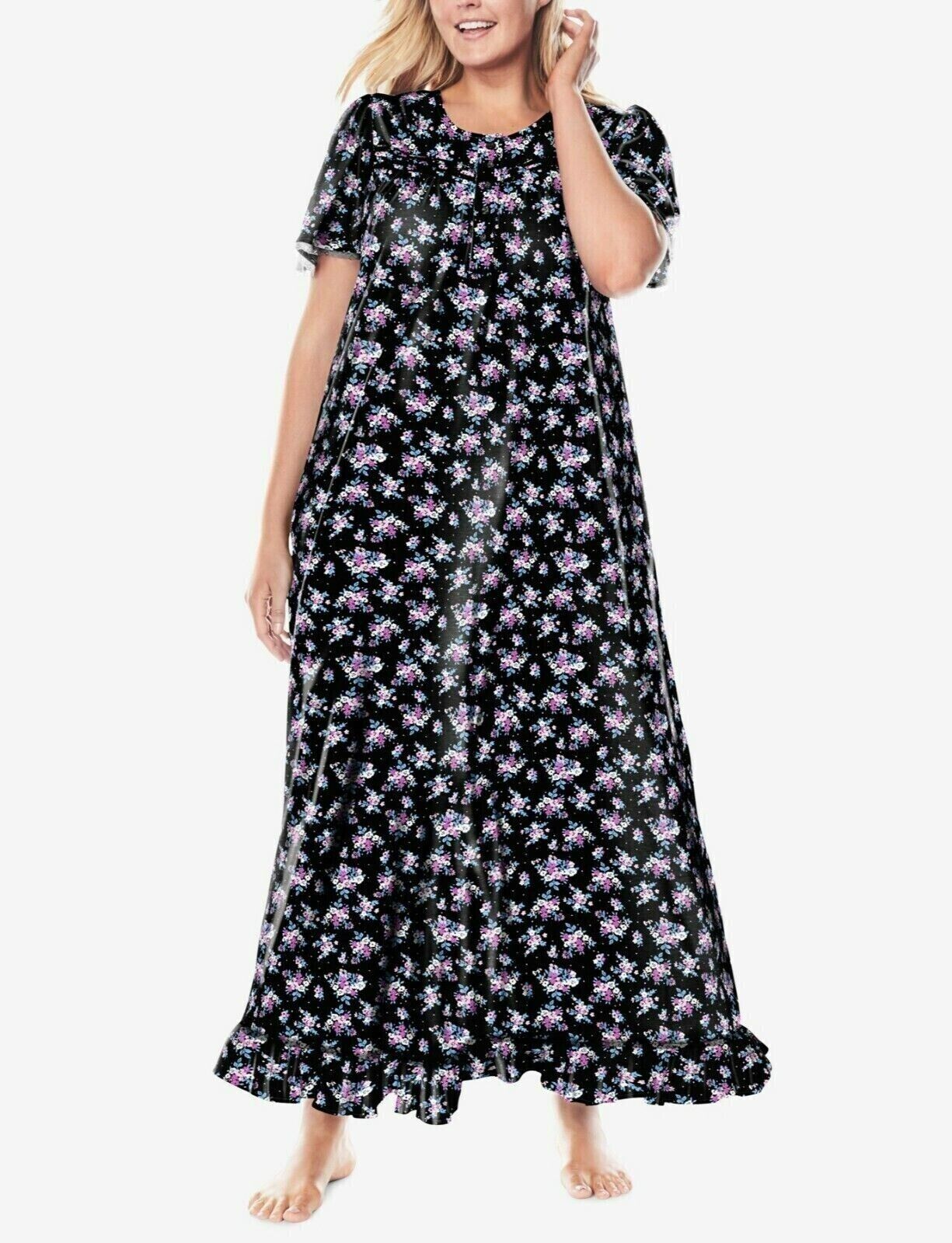 Dreams & Co. Plus Size Petite Black Bouquet Long Cotton Knit Nightgown Size 2X