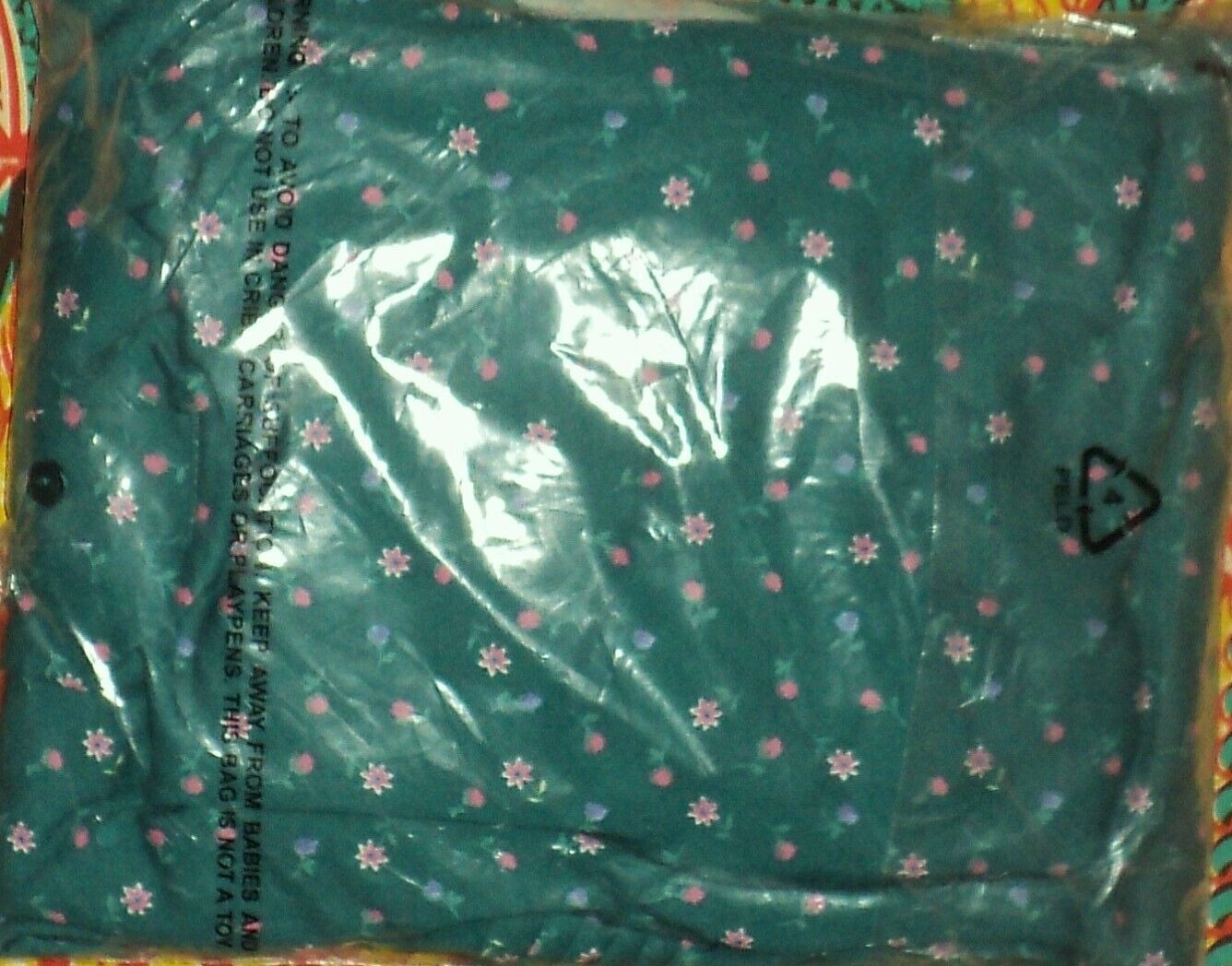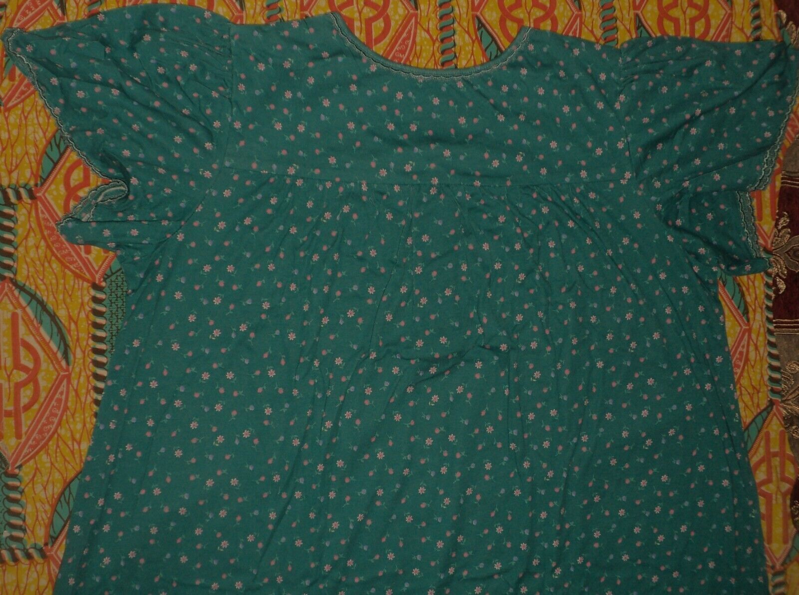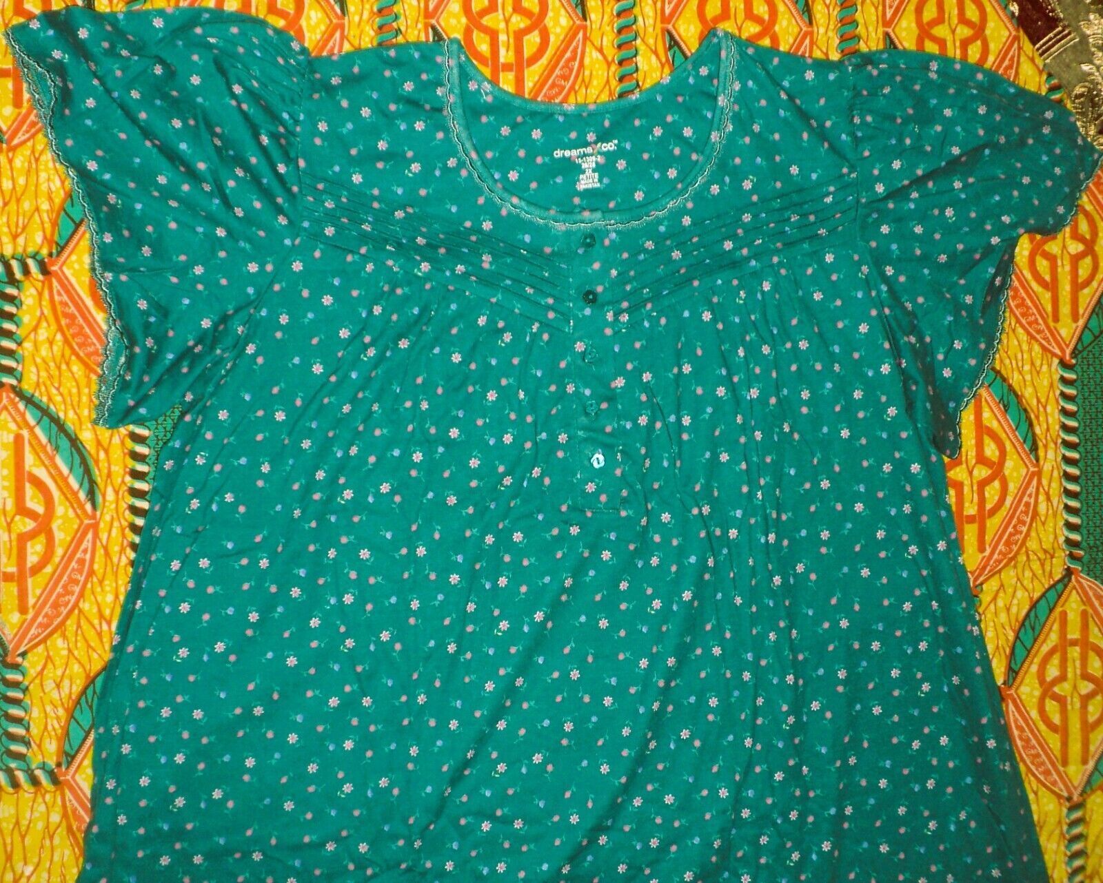 Dreams & Co. Plus Size Petite Deep Teal Ditsy Long Cotton Knit Nightgown Sz L