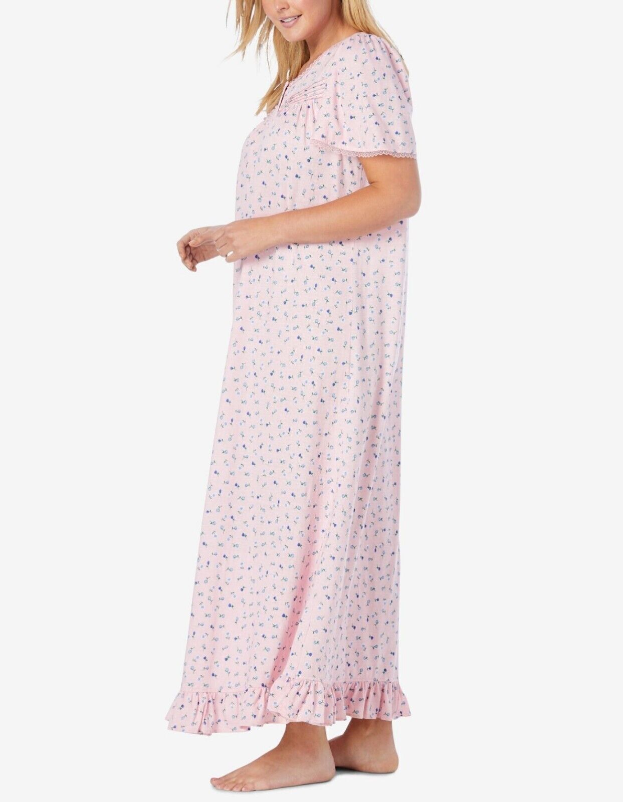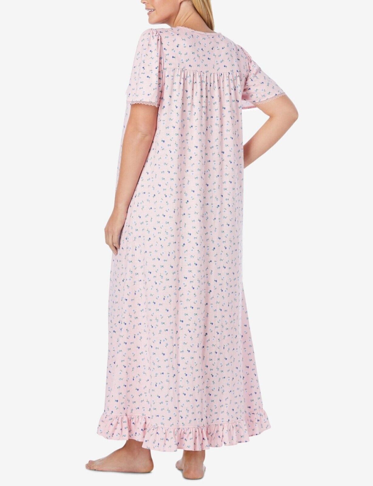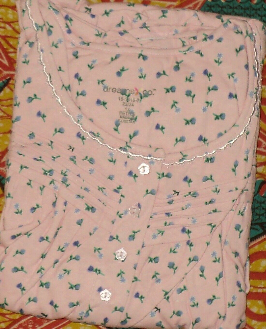 Dreams & Co. Plus Size Petite Pink Ditsy Long Cotton Knit Nightgown Size L-18/20