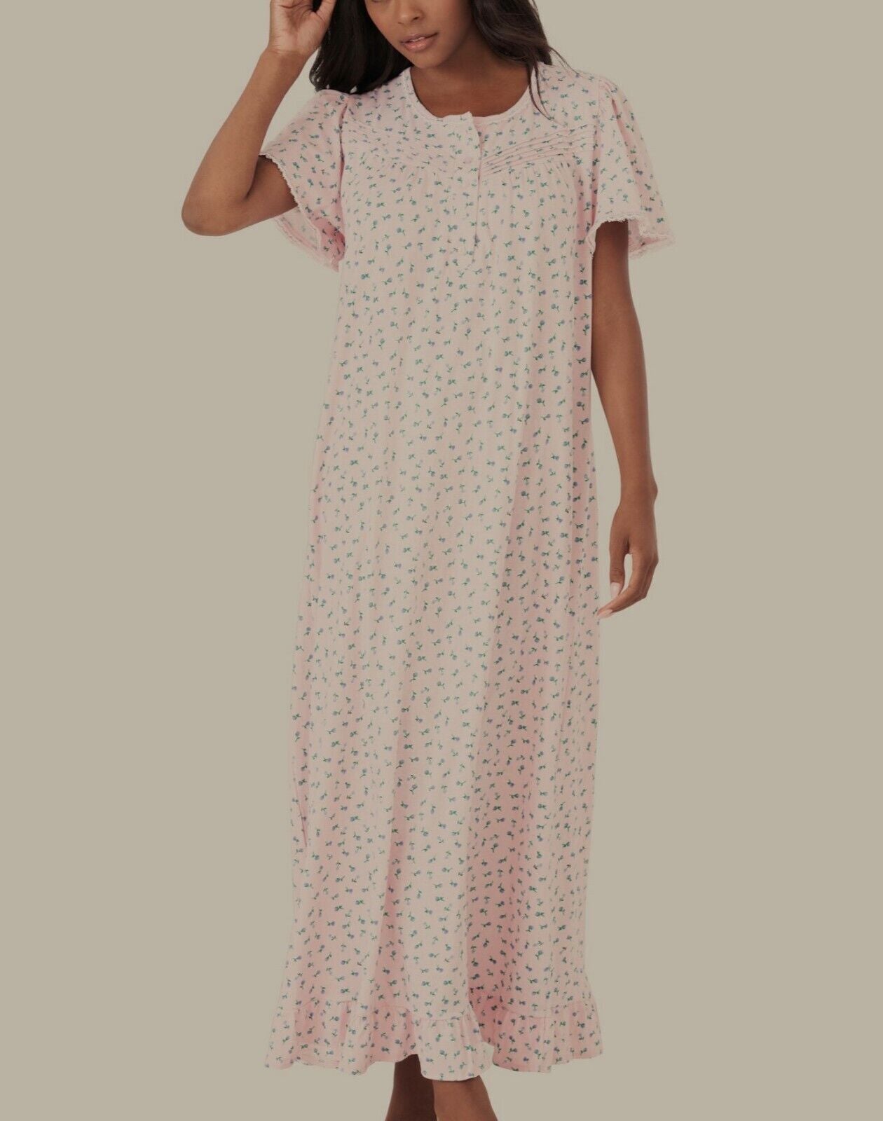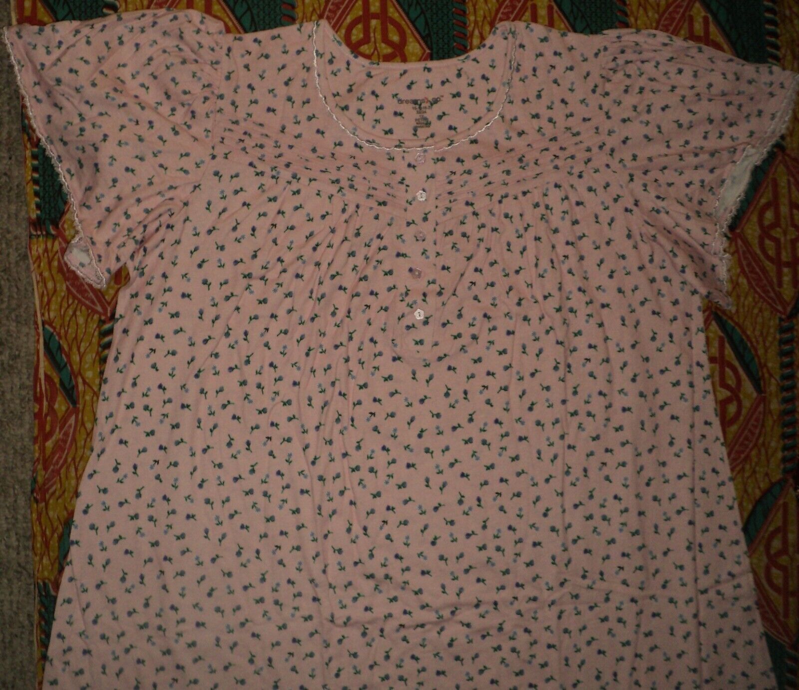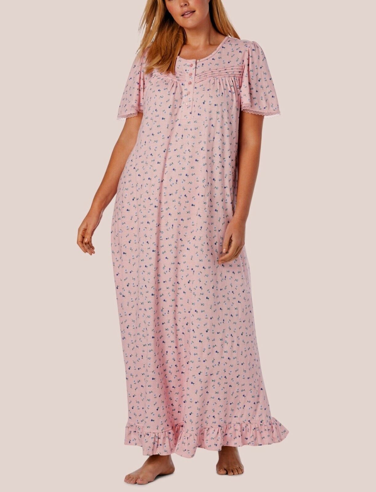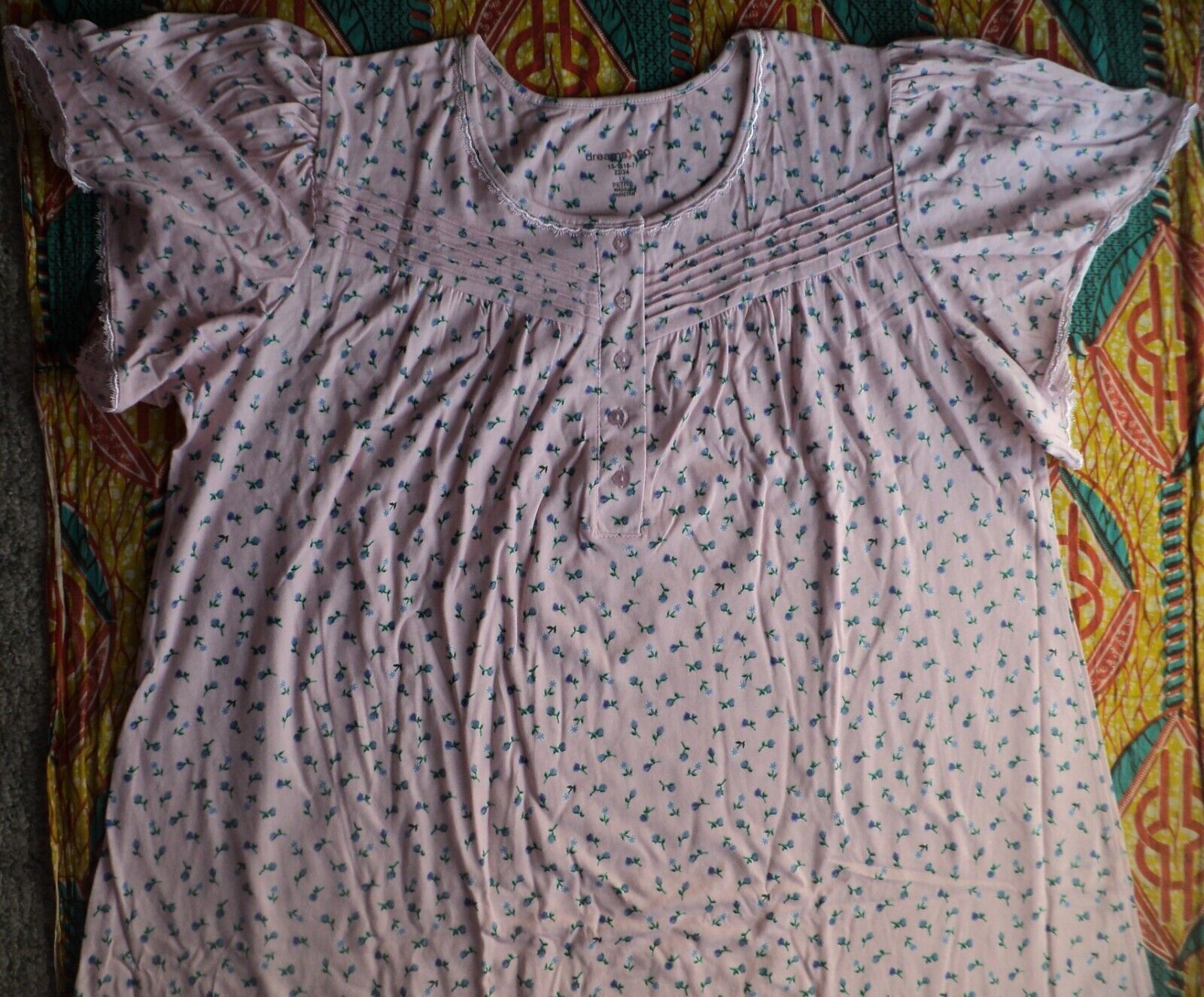 Dreams & Co. Plus Size Petite Pink Ditsy Long Cotton Knit Nightgown Size L-18/20
