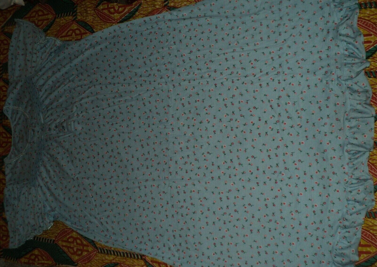 Dreams & Co. Plus Size Petite Sky Blue Ditsy Long Cotton Knit Nightgown Size 1X