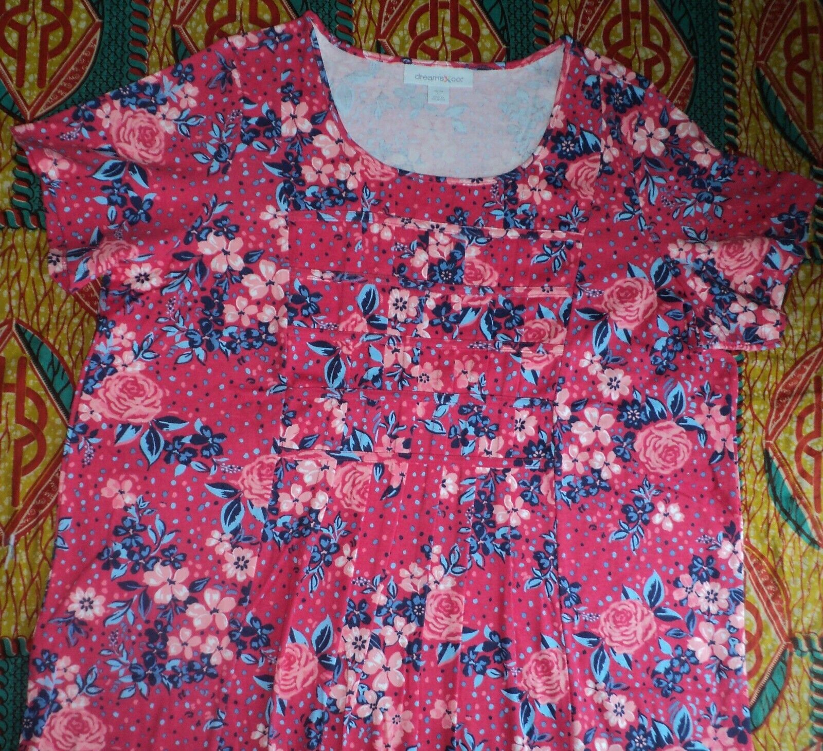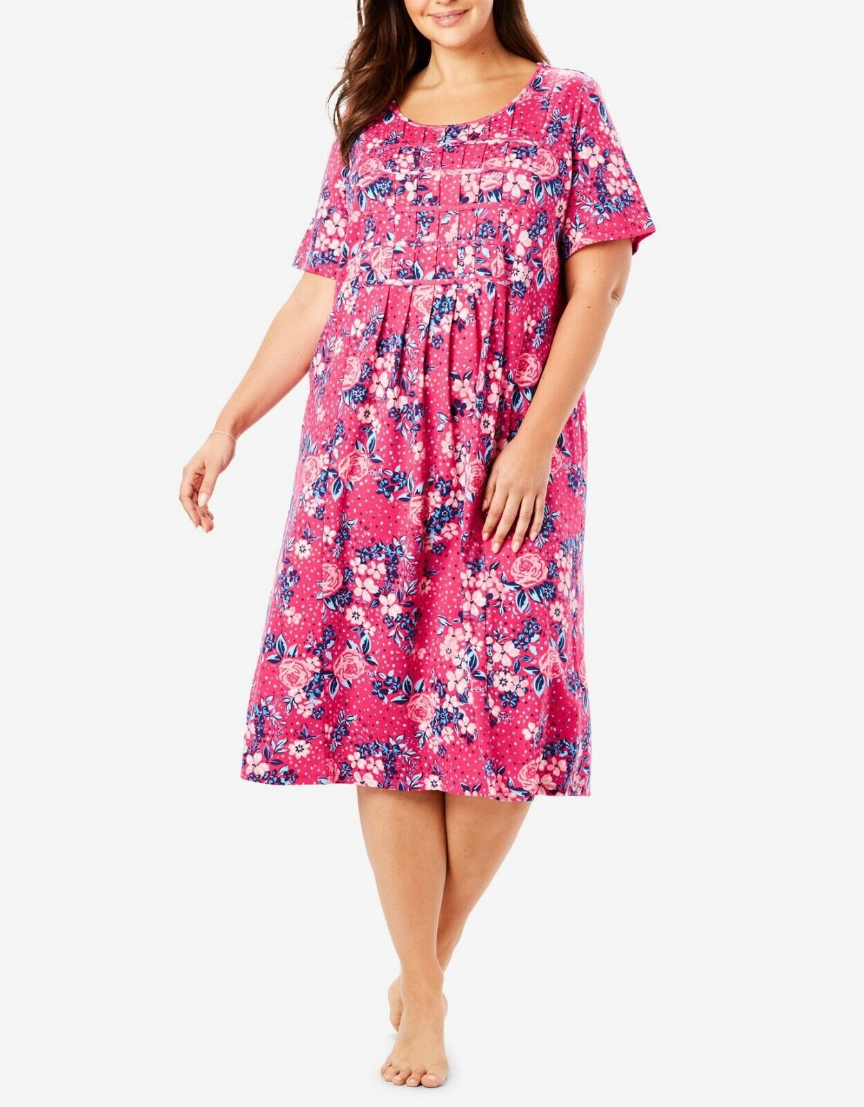 Dreams & Co. Plus Size Radiant Pink Flowers Pintucked Lounger Size 2X(26/28)