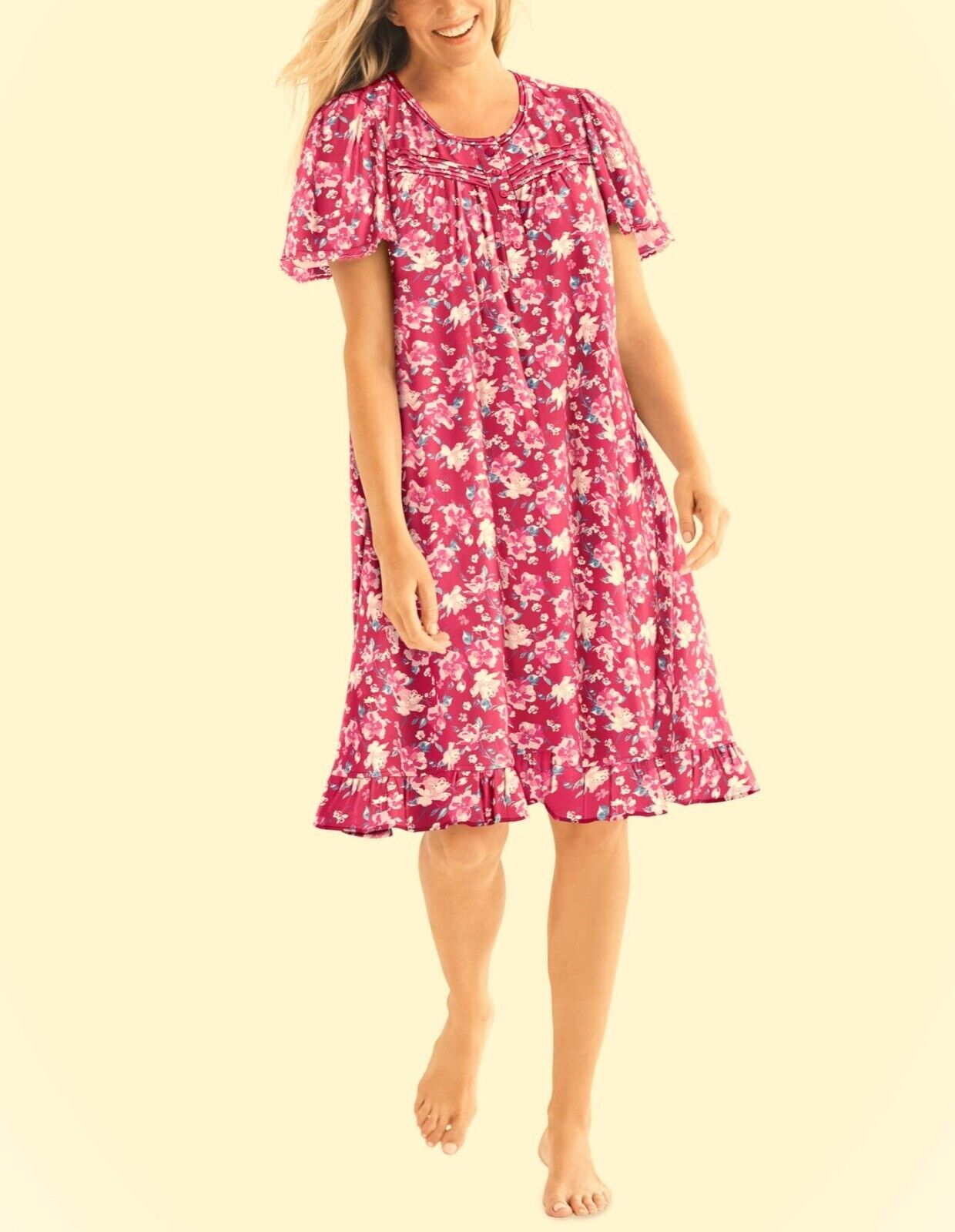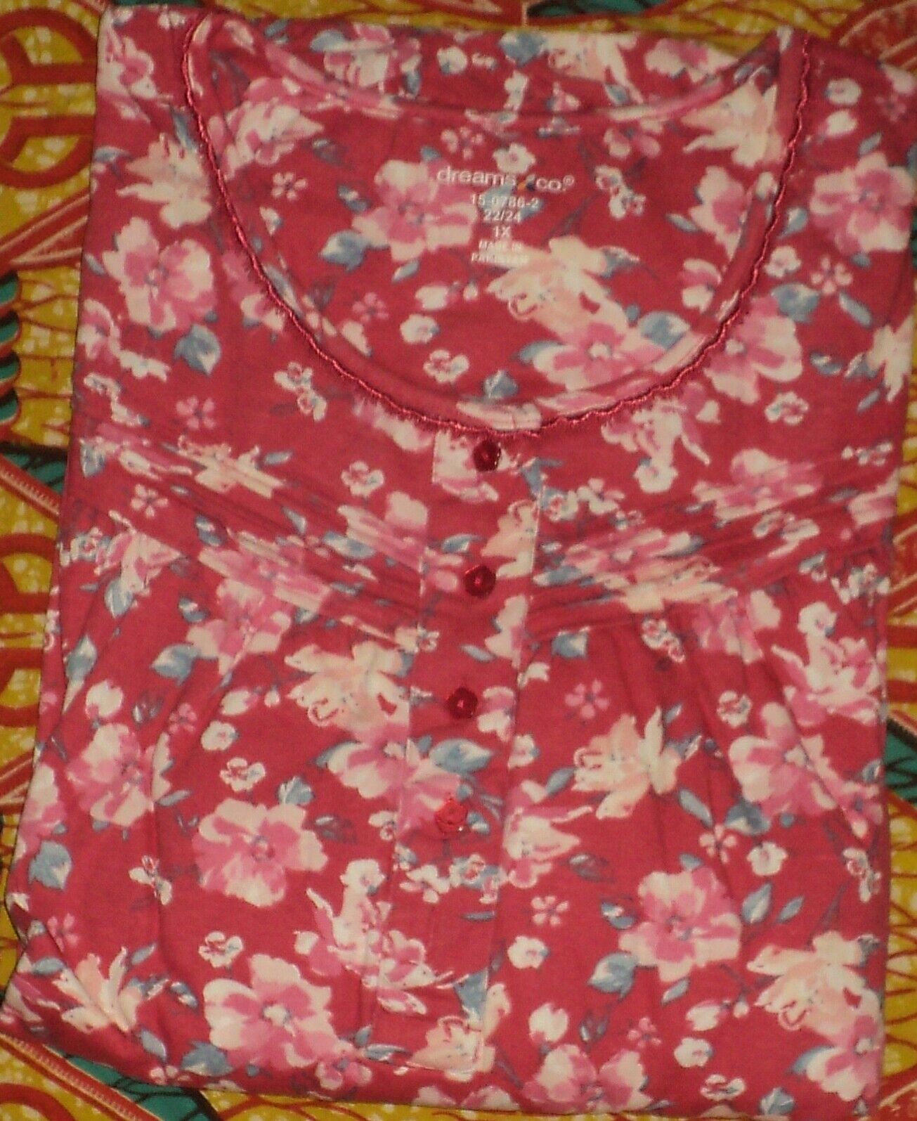 Dreams & Co. Plus Size Strawberry Roses Short Cotton Knit Nightgown Sz 1X-22/24