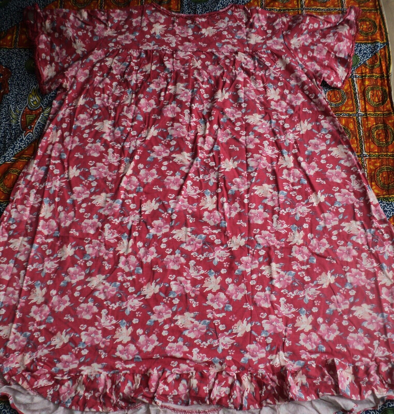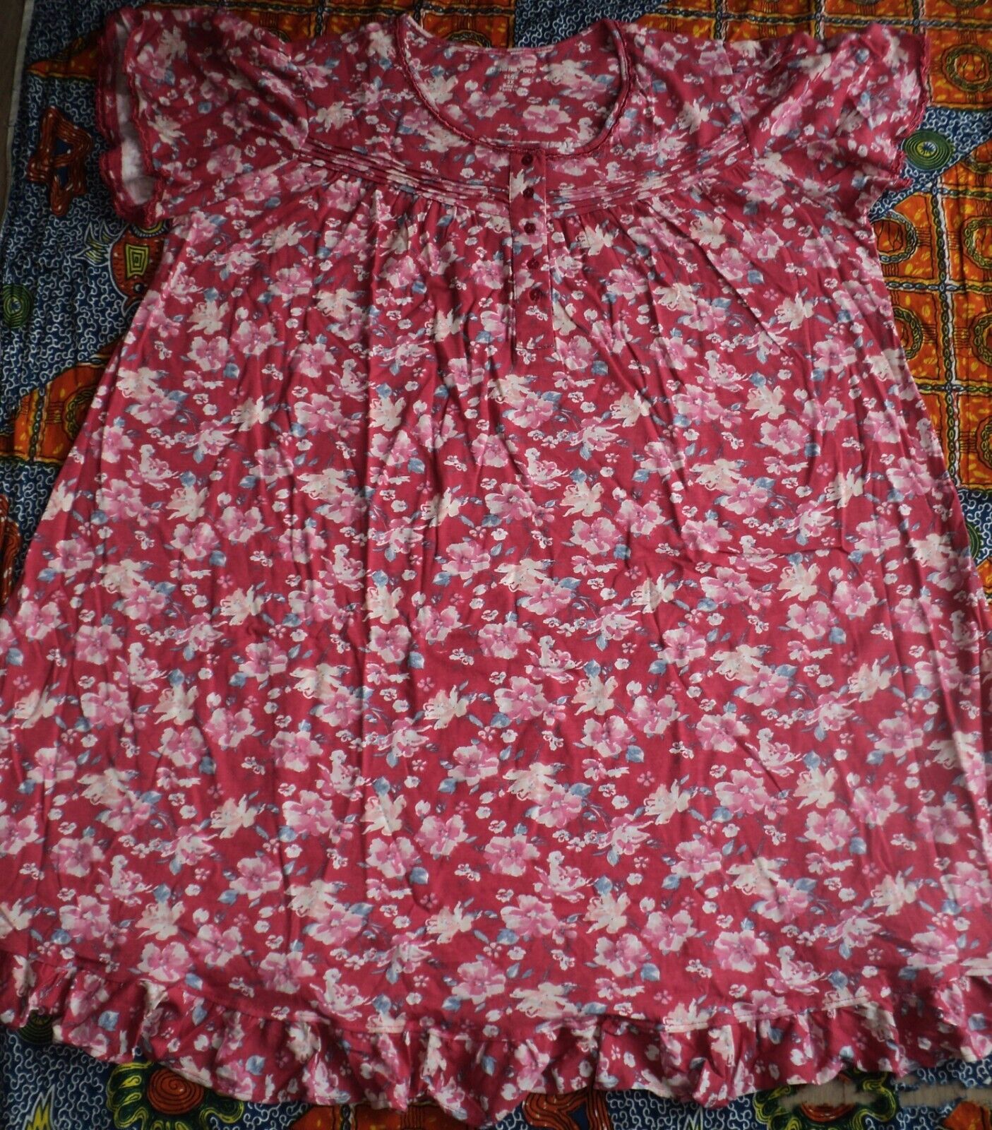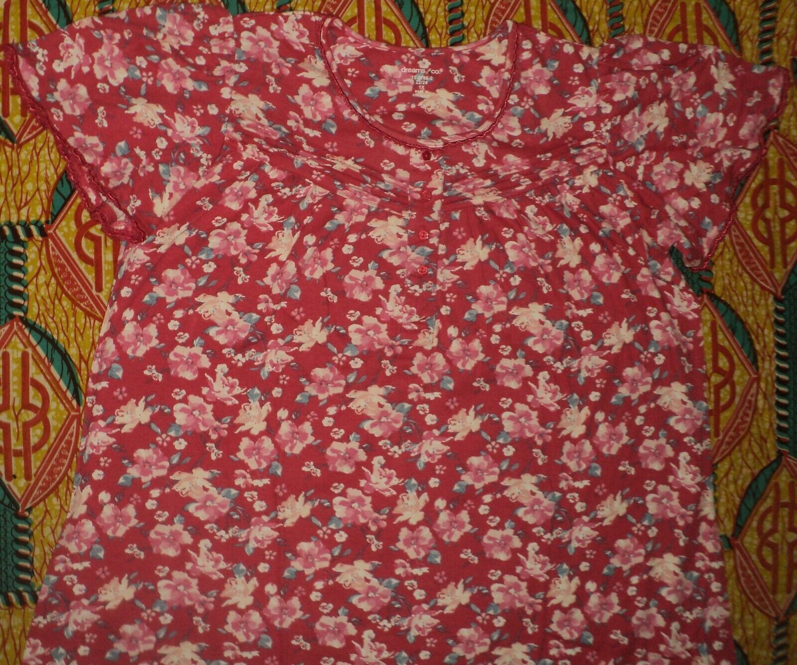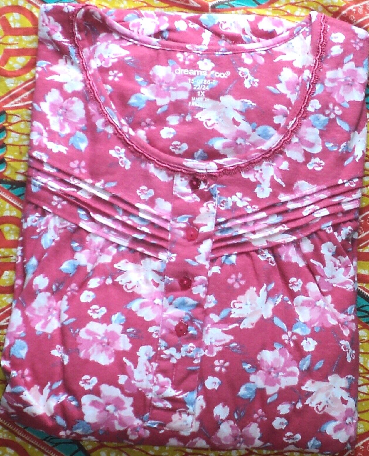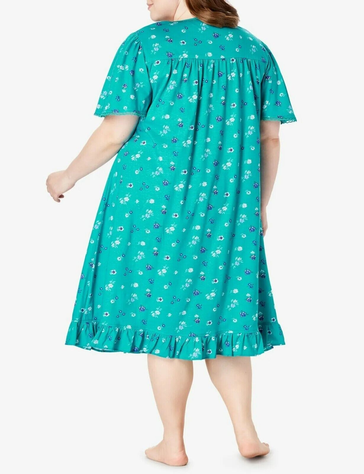 Plus size short cotton knit gown by Dreams & Co. A-line flair. This gown comes in a plethora of cute patterns!
