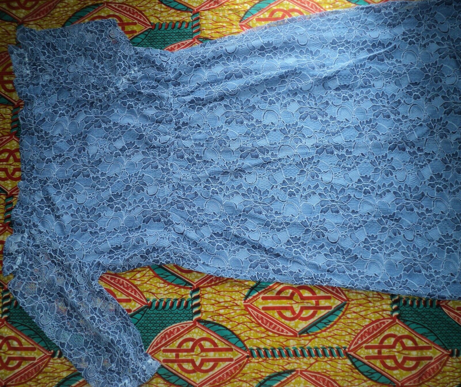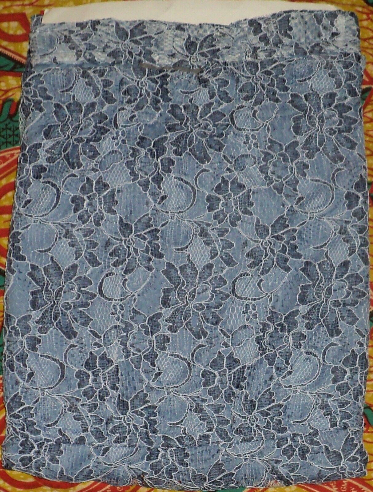 not stretch. Hips: 58”. Shoulder to base 42" length. 100% polyester. Lace