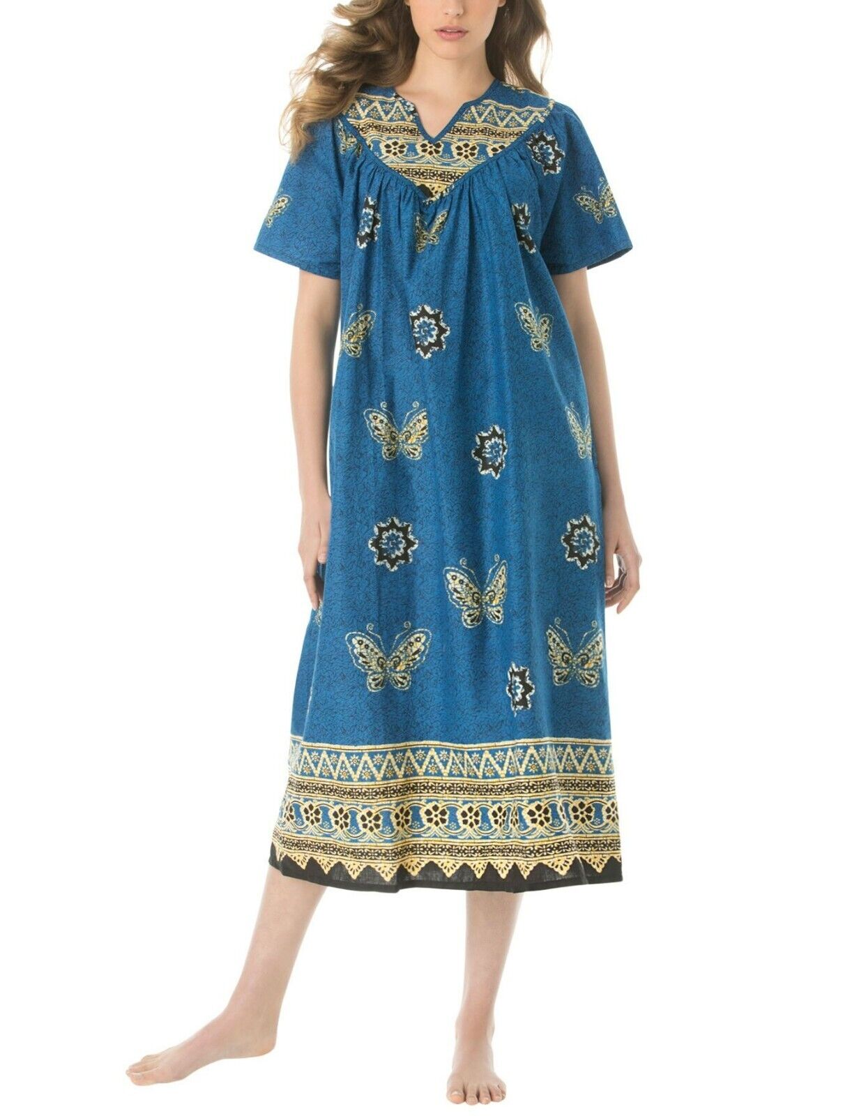 Only Necessities Plus Size Blue Butterfly Notch Neck Lounger Size 1X(22/24)