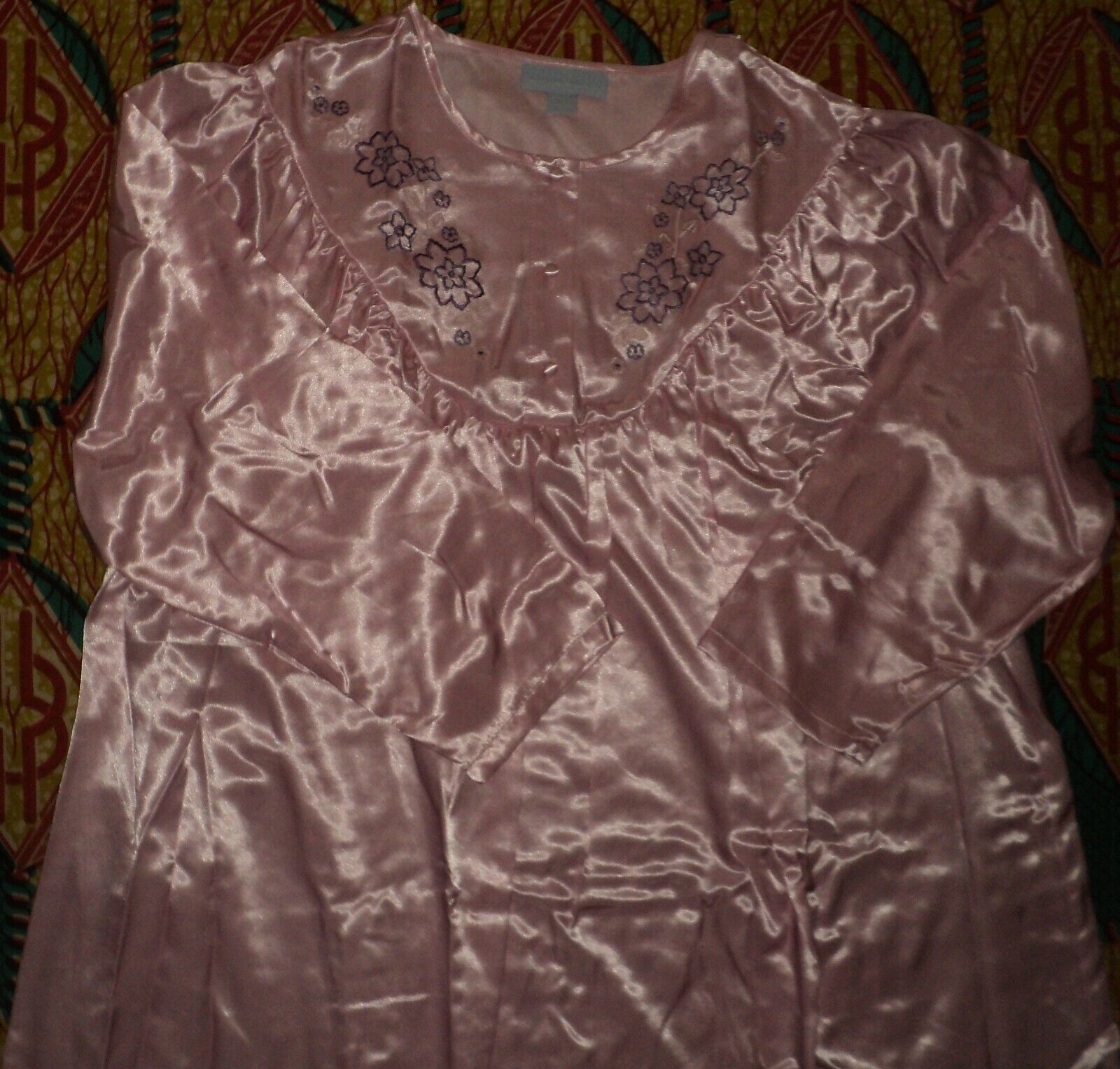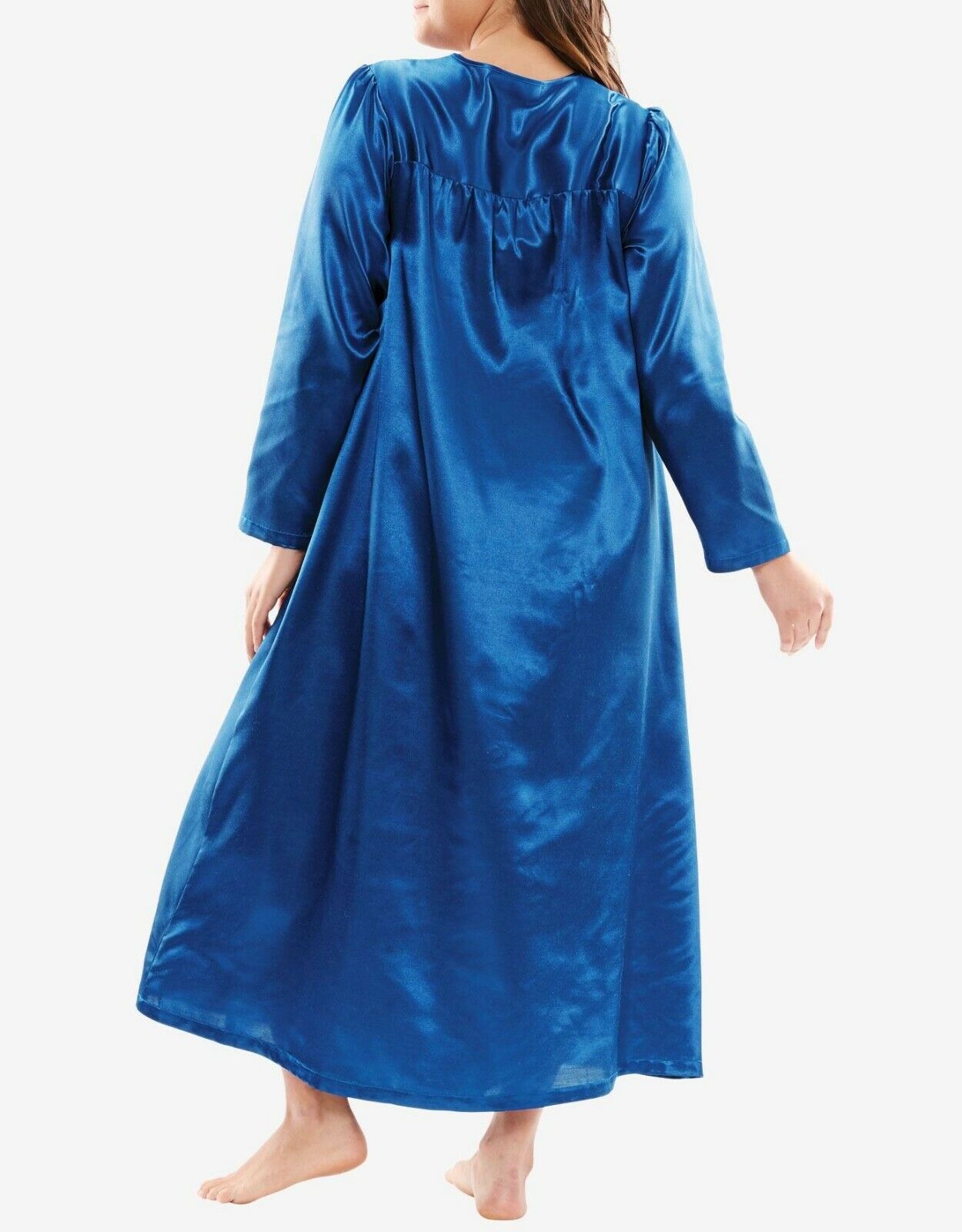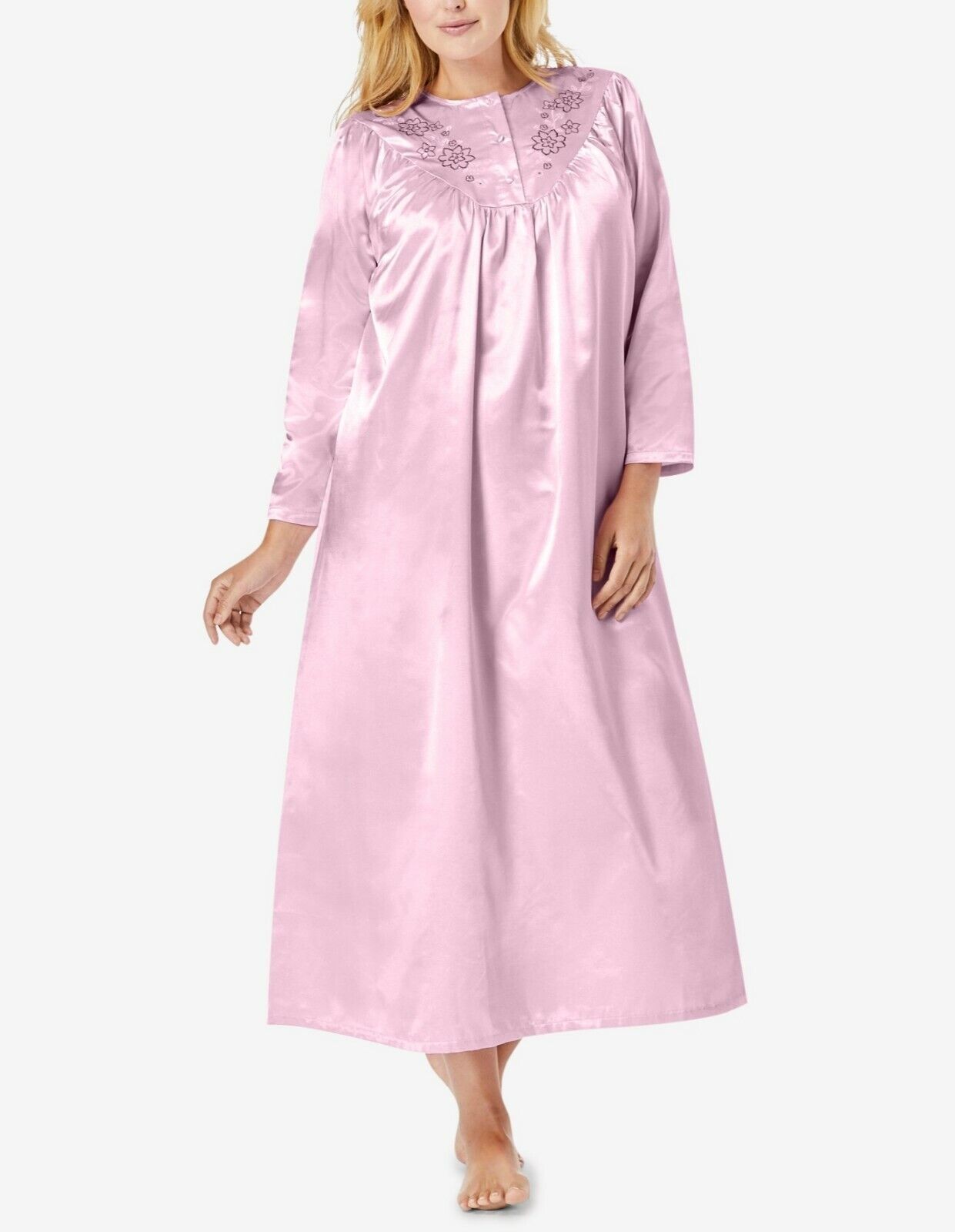 Necessities. This brushed back satin, plus size nightgown. Embroidered