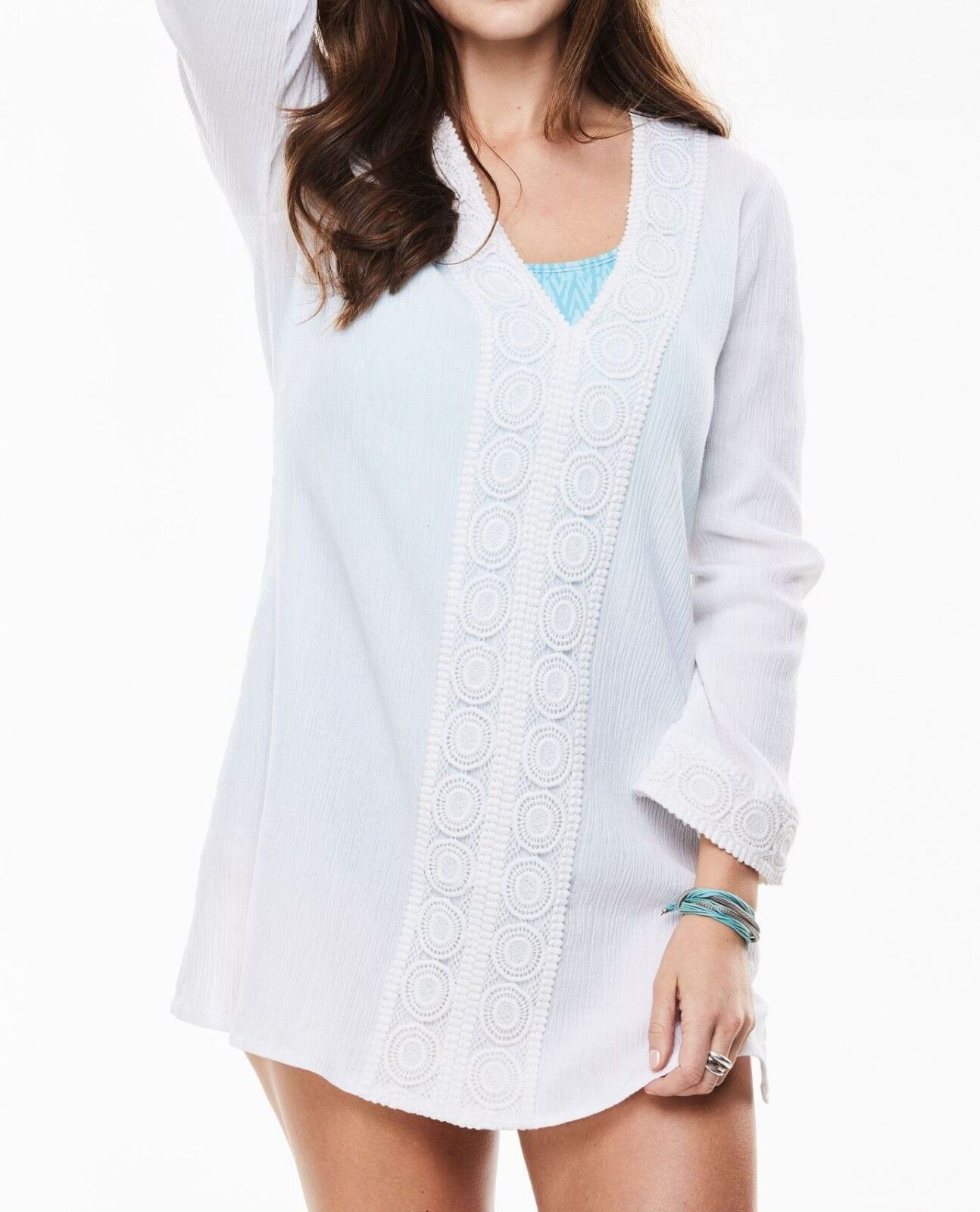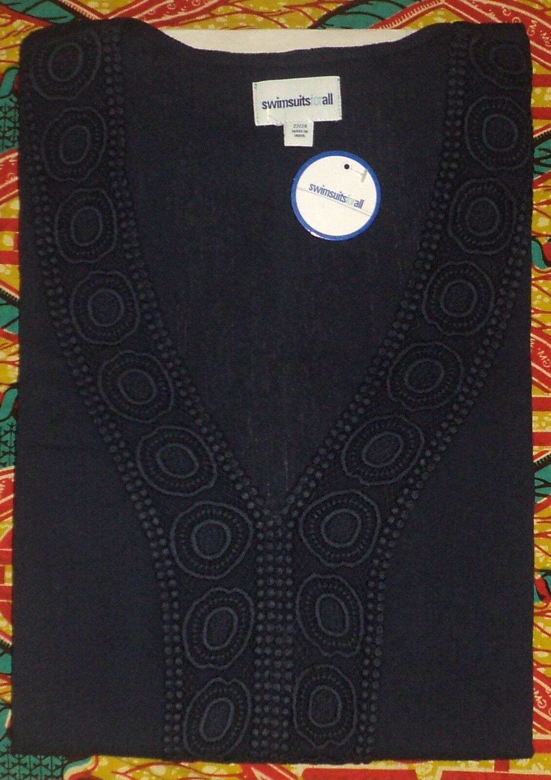 crochet-trimmed gauze swim cover-up by Swimsuitsforall. Breezy and light, this plus size swim cover-up has crochet trim in front.