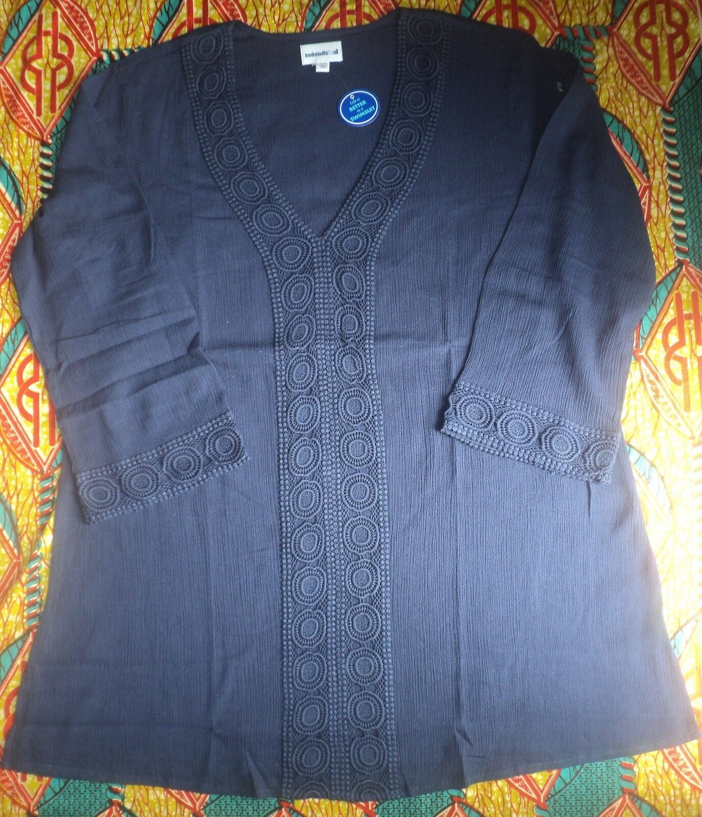 Plus Size Navy Long Sleeves Crochet-Trimmed Gauze Swim Cover-up Size 34/36