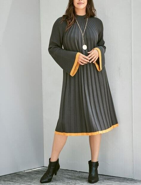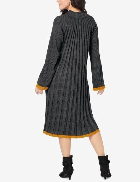 Plus size swing sweater dress by Roaman’s. The shapely knit dress. The swing shape is fits and flares and it has