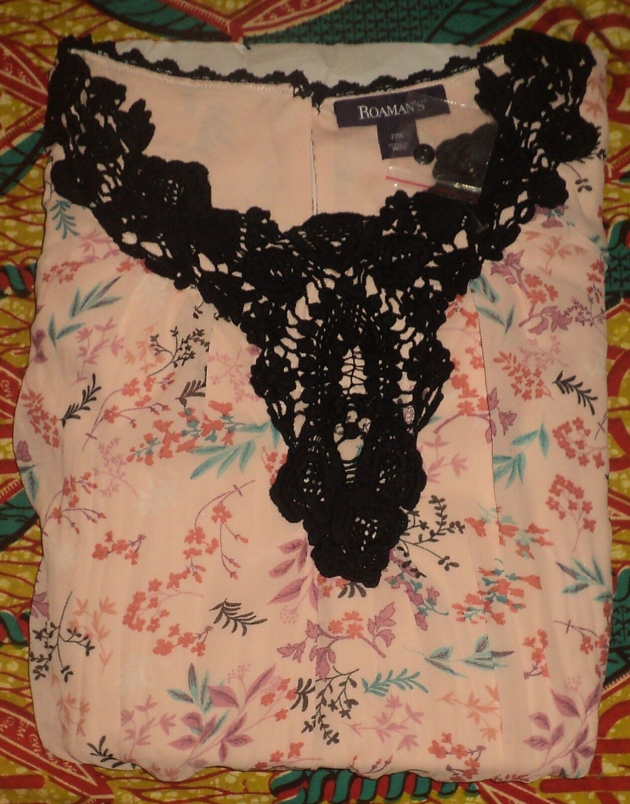 Roaman's Plus size Pale Blush Print Sleeveless Crochet Trim Maxi Dress Size 28W