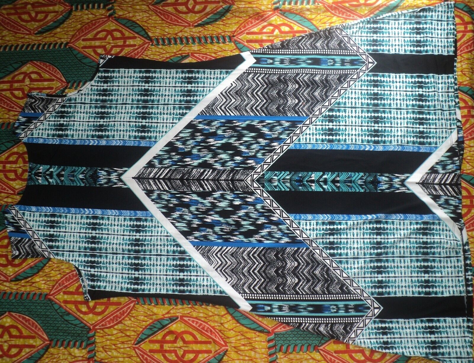 wash, imported. Brand new in bag with size tag on the bag. Color Teal Graphic Print. Size 2X(26/28).