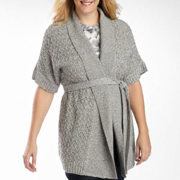 St. John's Bay Plus Size Lt. Gray Marl Belted Cardigan Sweater Size 2X