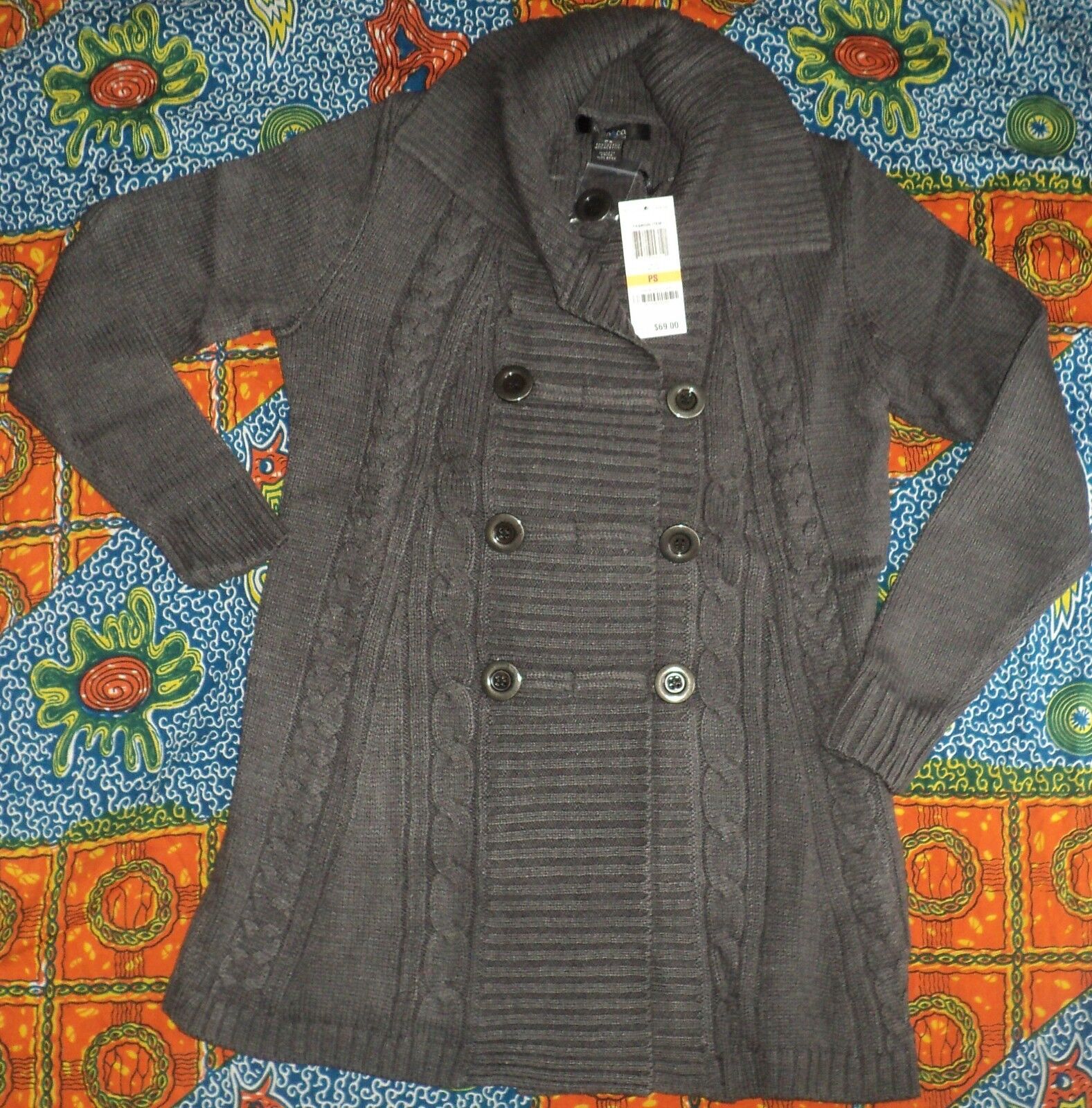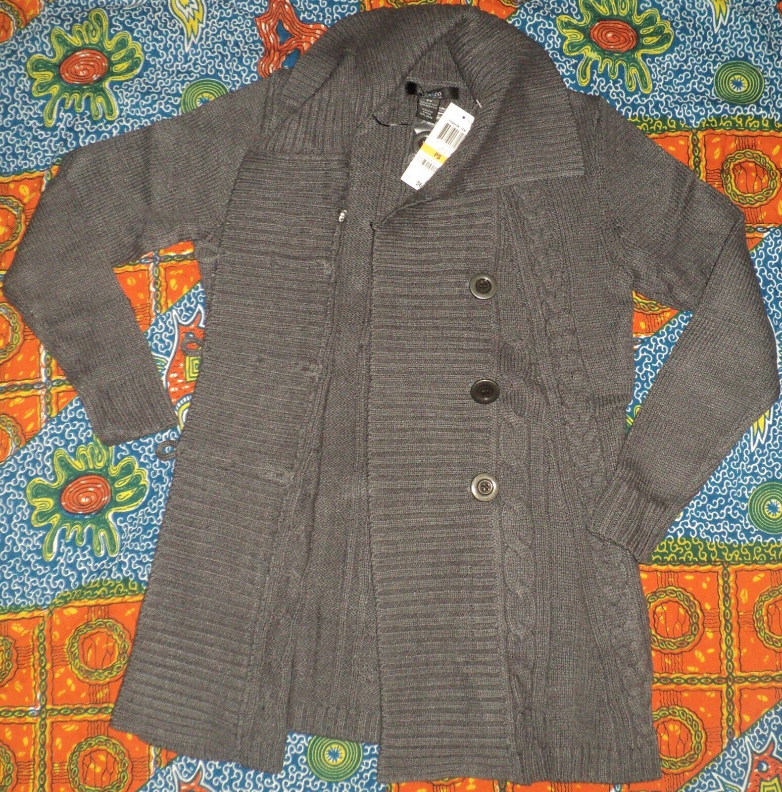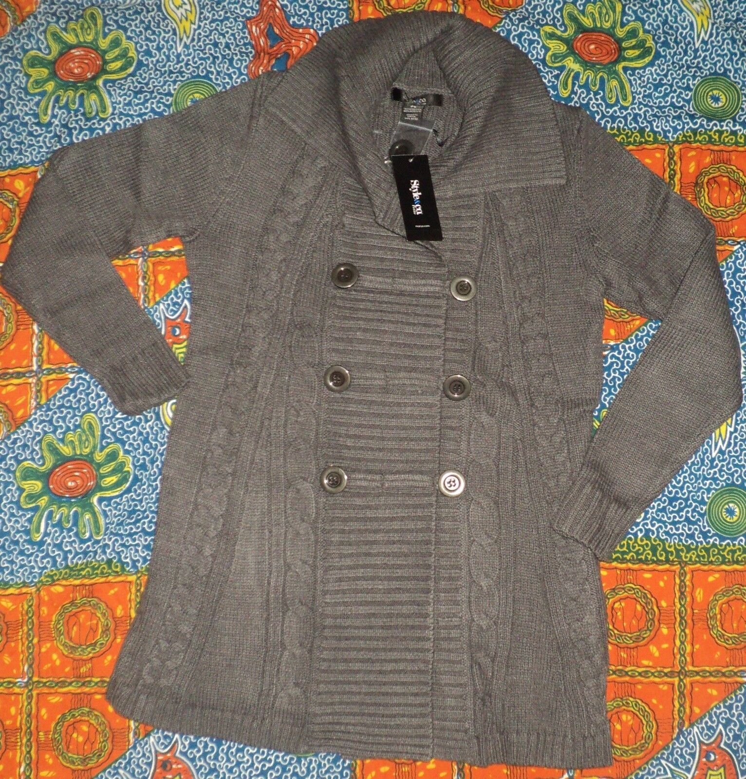 Style & Co. Charcoal Long-Sleeve Cable-Knit Sweater Cardigan Size PXL