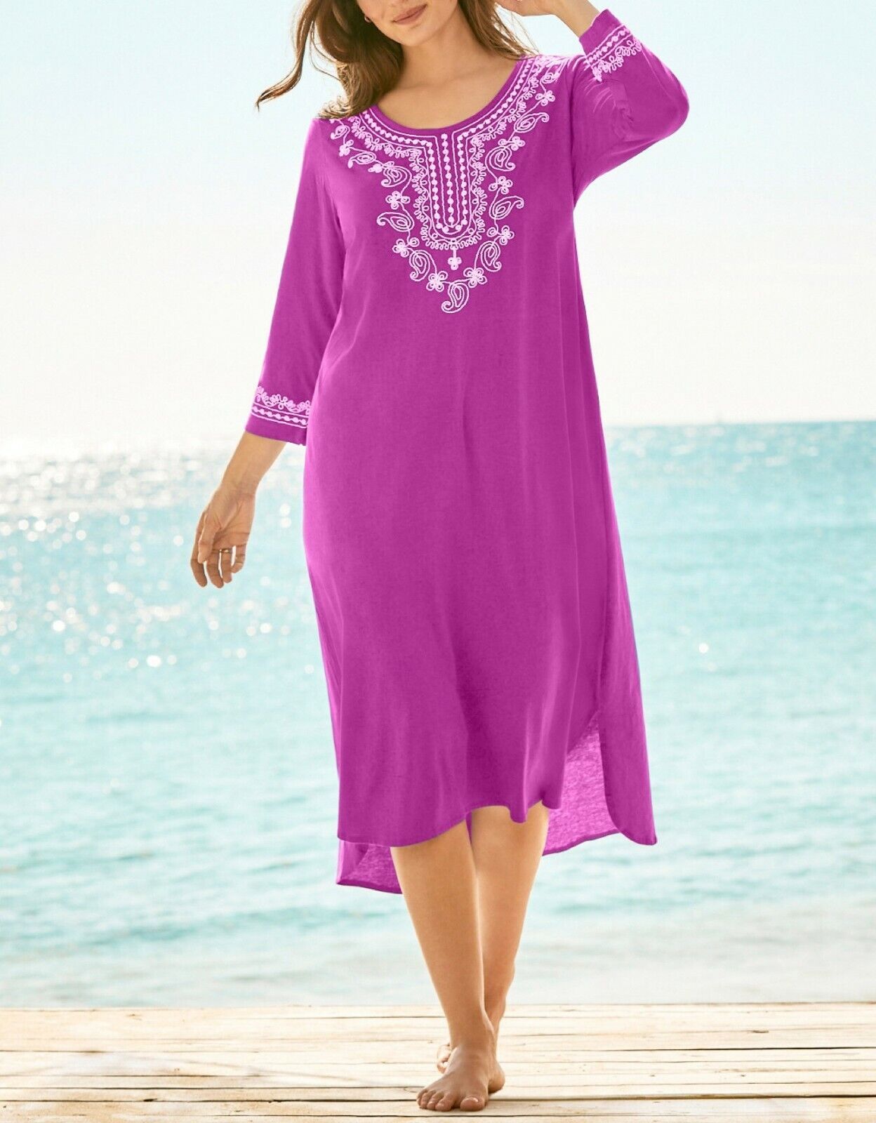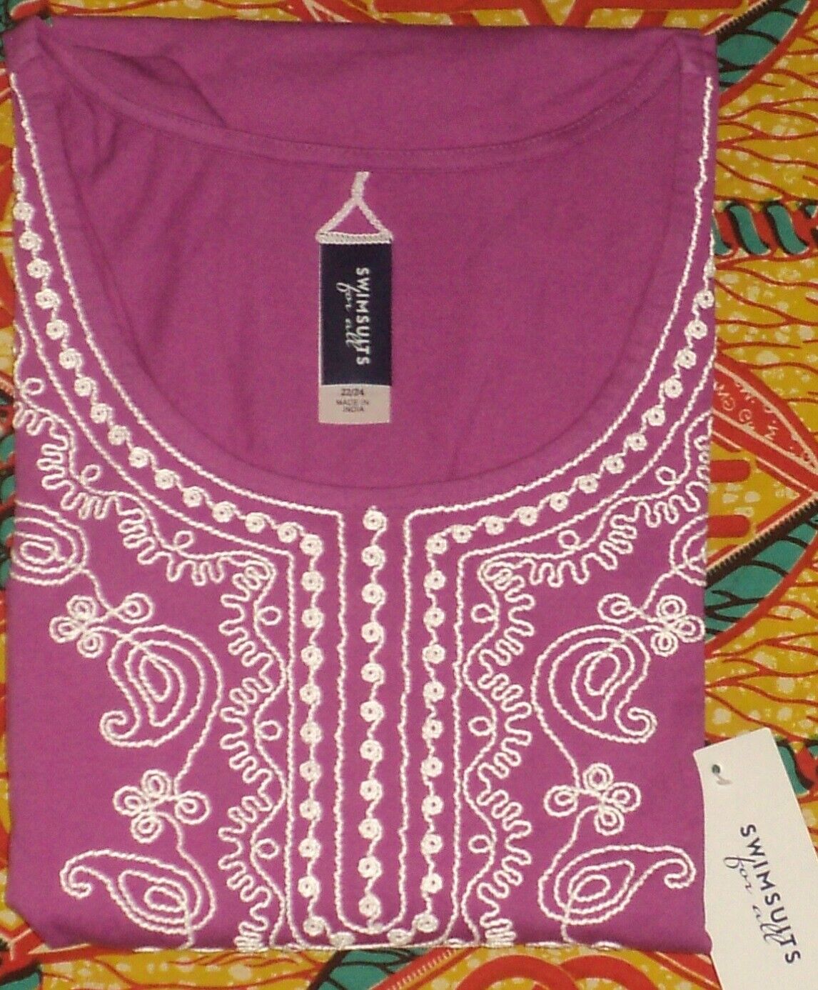 Swimsuits For All Plus Size Beach Rose Embroidered Cover Up Size 34/36