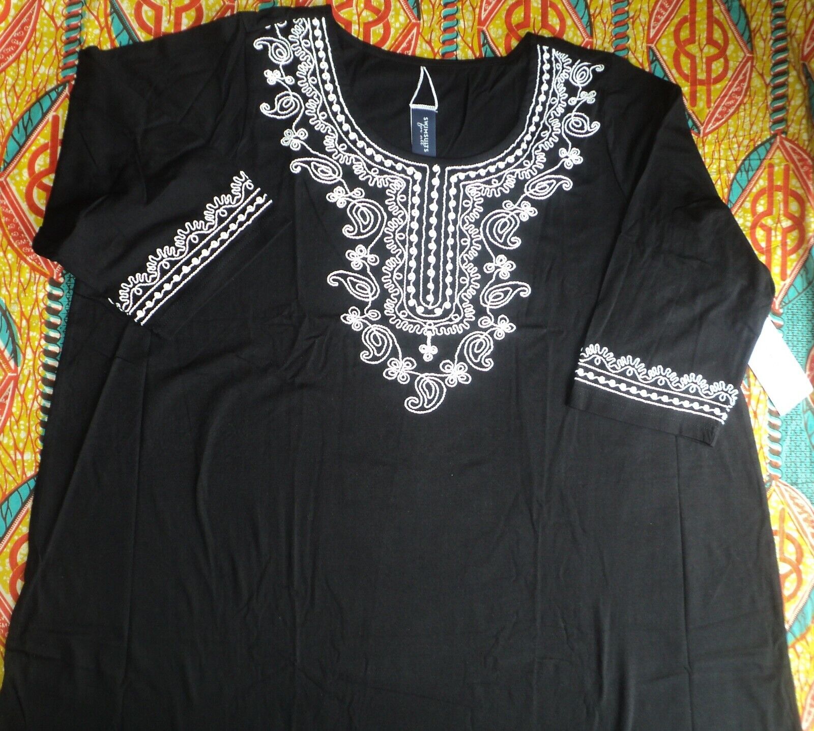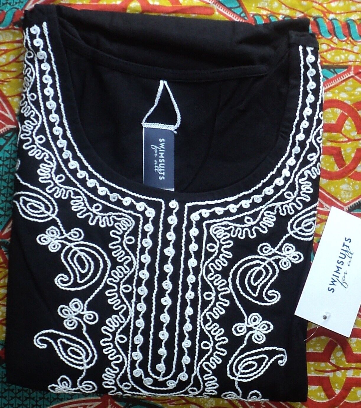 Swimsuits For All Plus Size Black Embroidered Cover Up Size 26/28