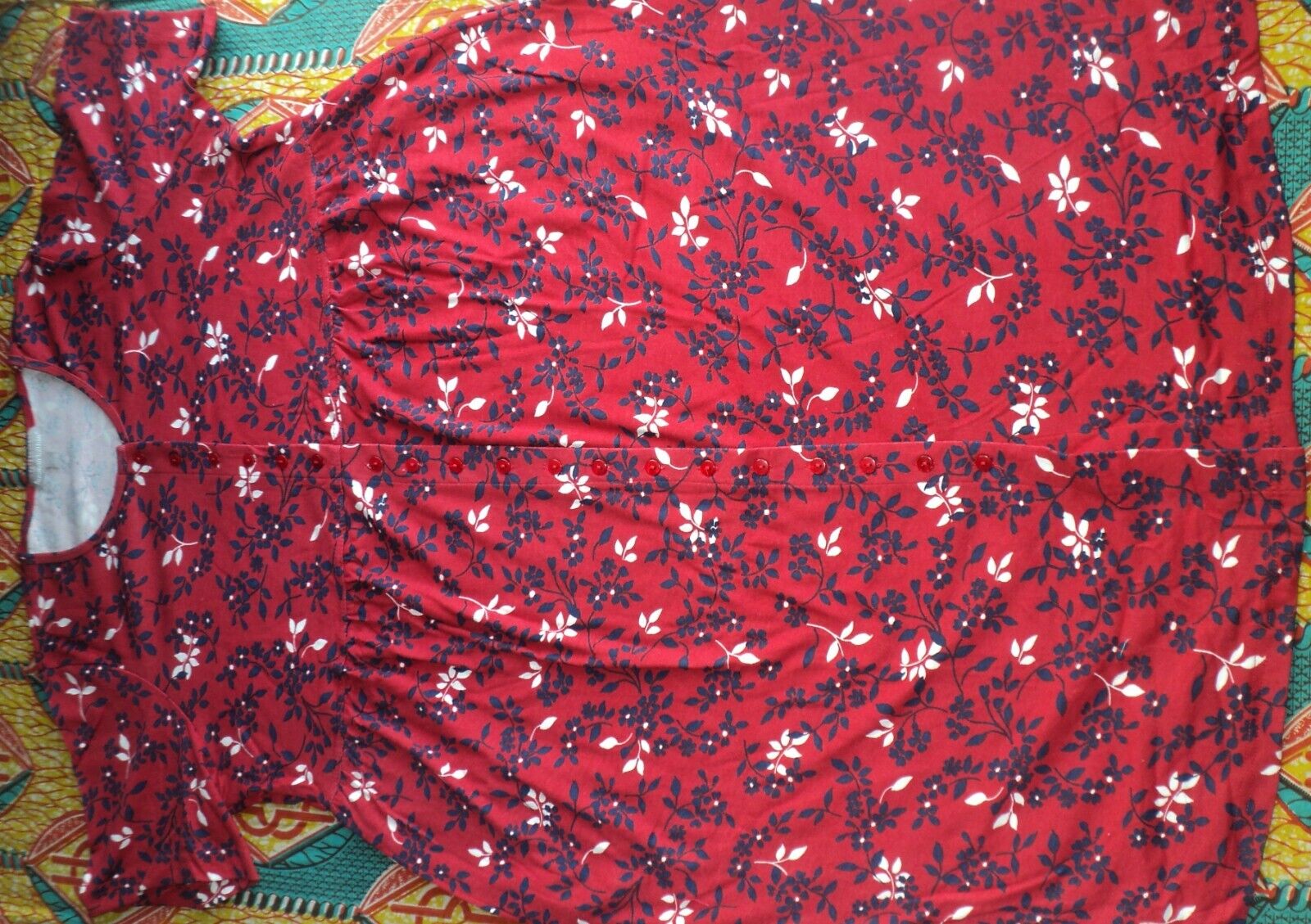 Woman Within Petite Plus Size Classic Red Button Front Empire Waist Dress Sz L