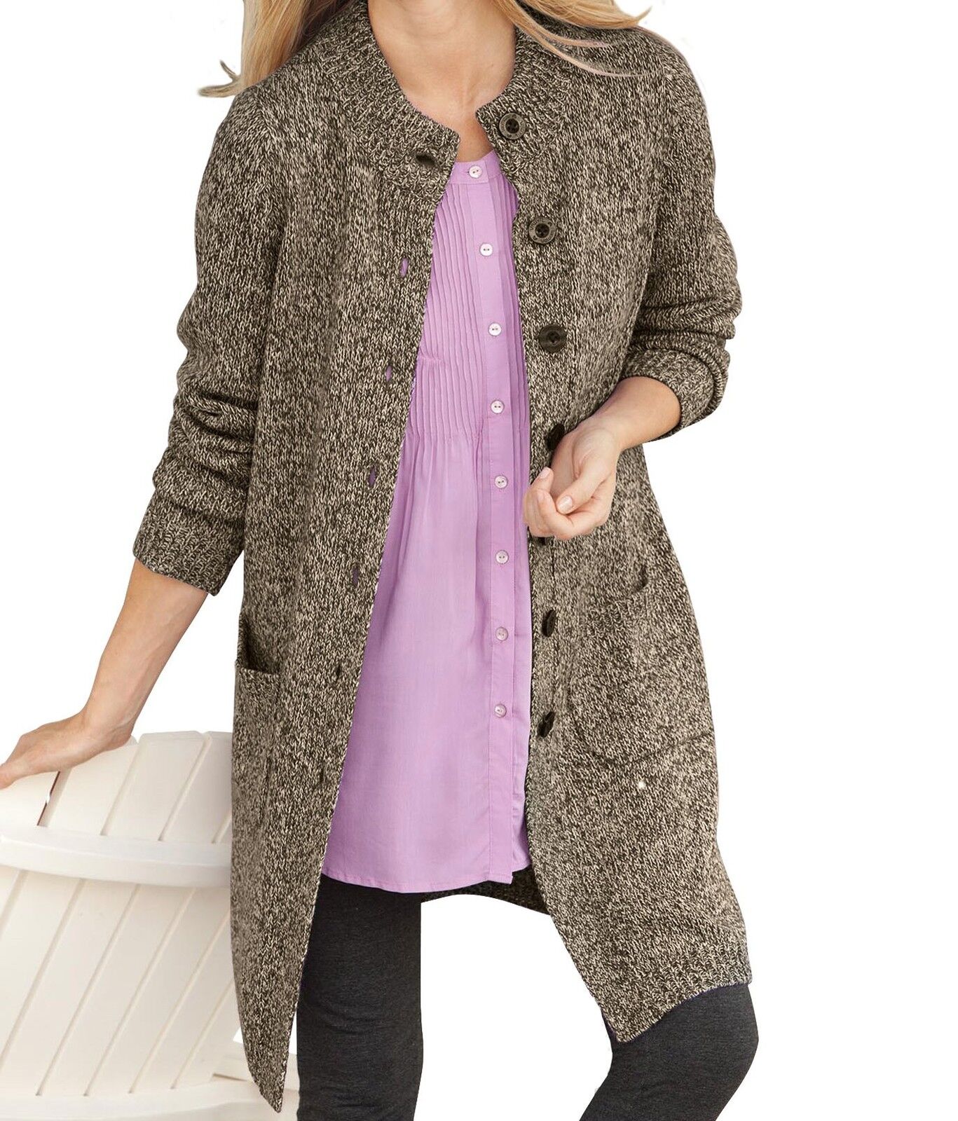 Plus size marled cardigan sweater jacket by Woman Within. Rich texture and a flattering long length make this the perfect transitional layer . plus size sweater jacket is fashionable, comfortable and essential for the season.