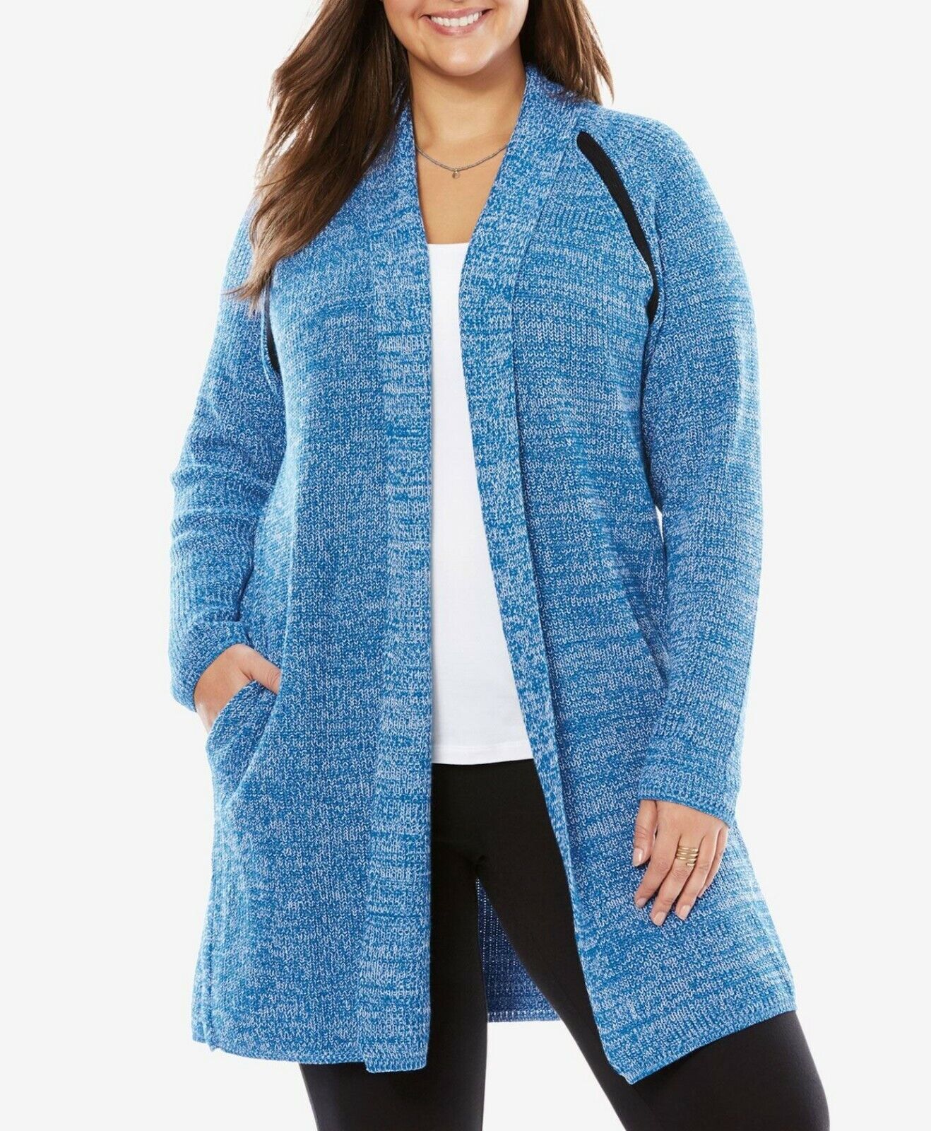 Woman Within Plus Size Bright Cobalt White Sporty Cardigan Size 2X(26/28)
