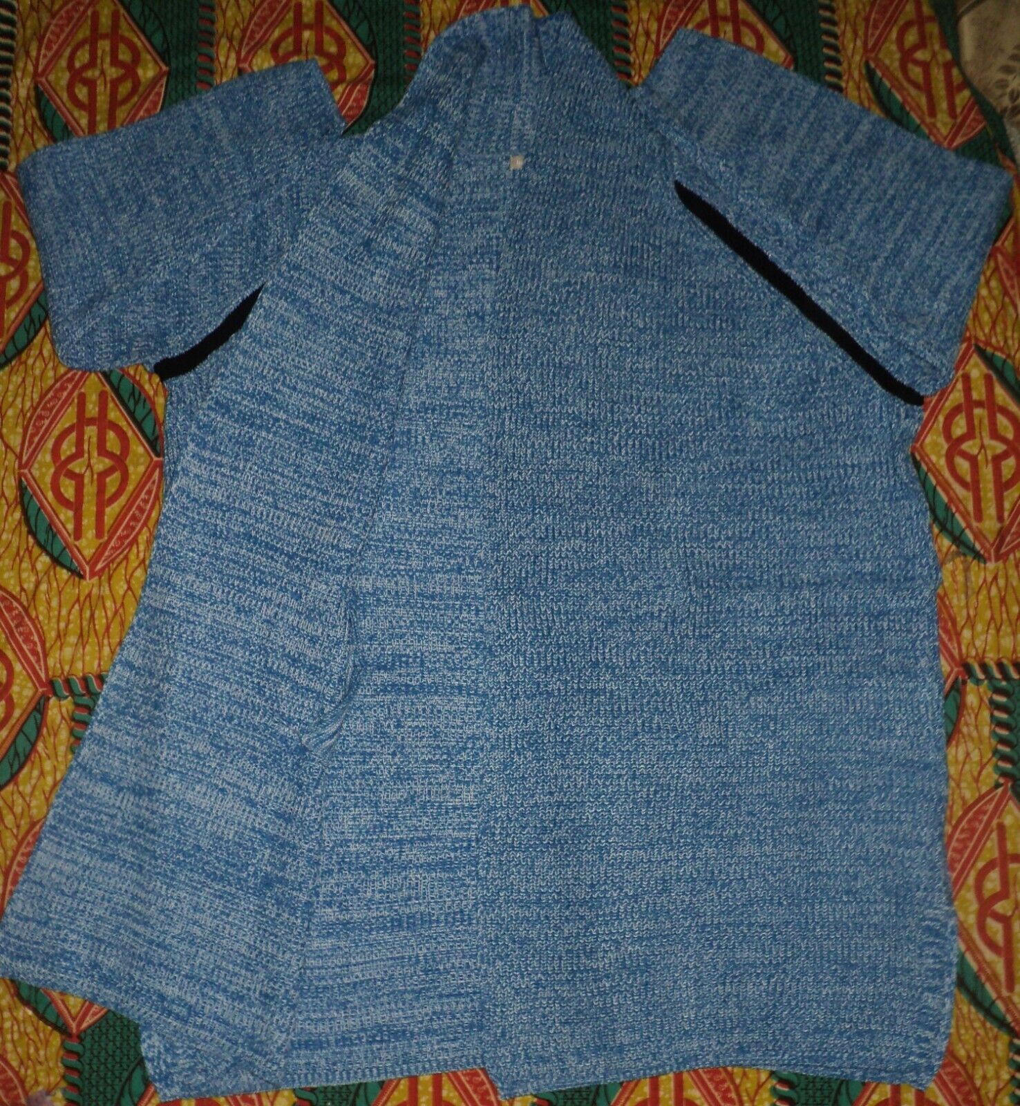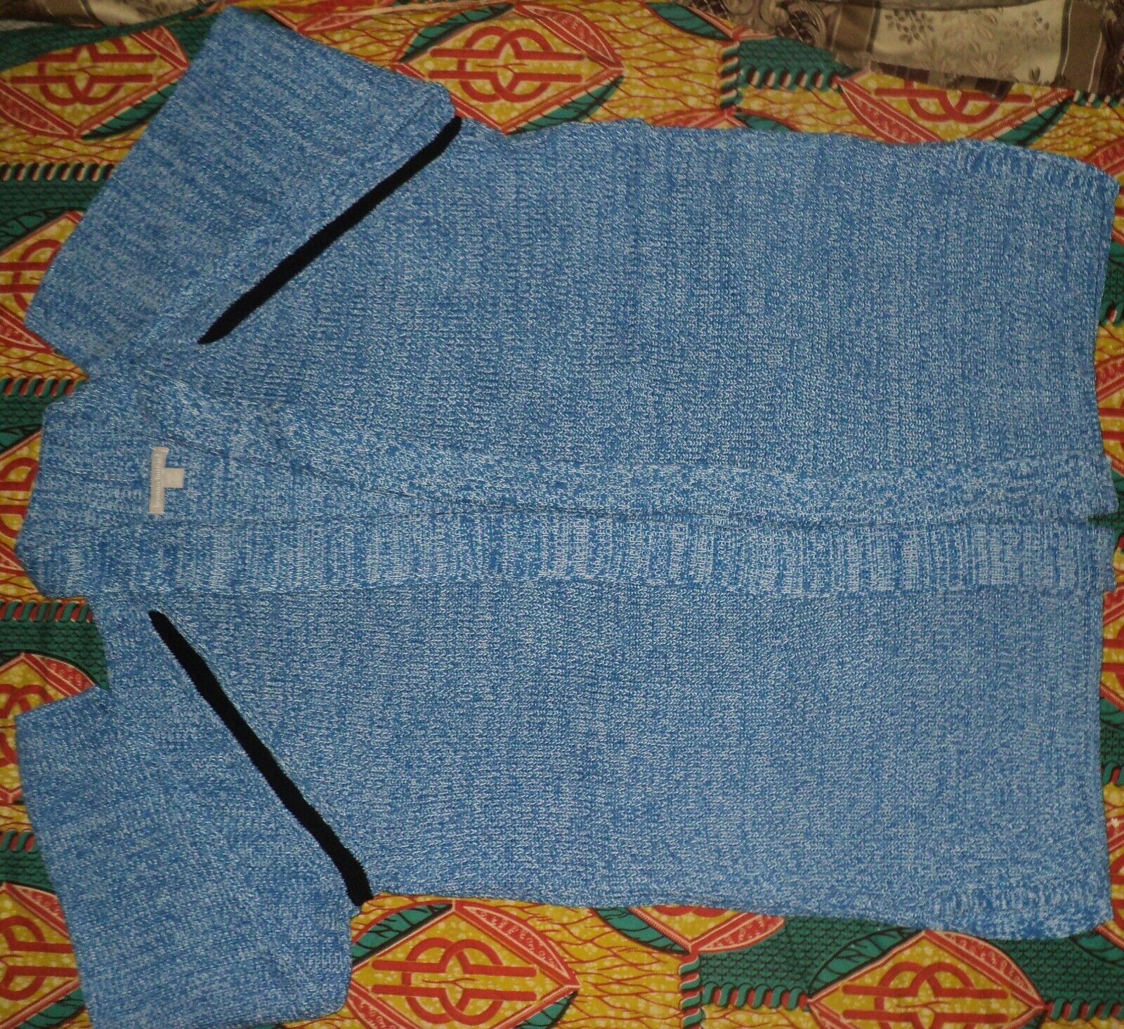 slits, solid trim. Side pockets. Long sleeves. Bust: 56”. Shoulder to base 331/2"