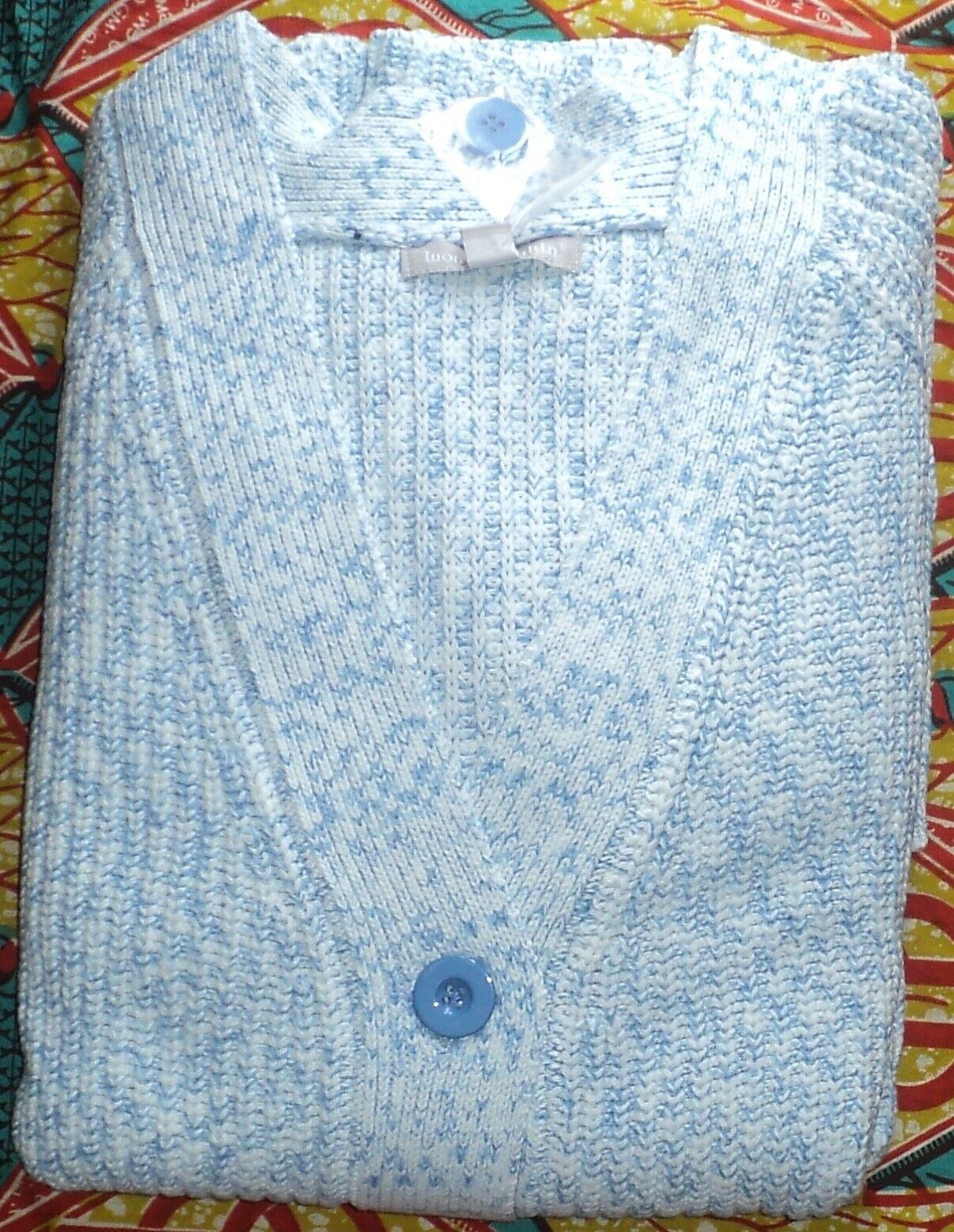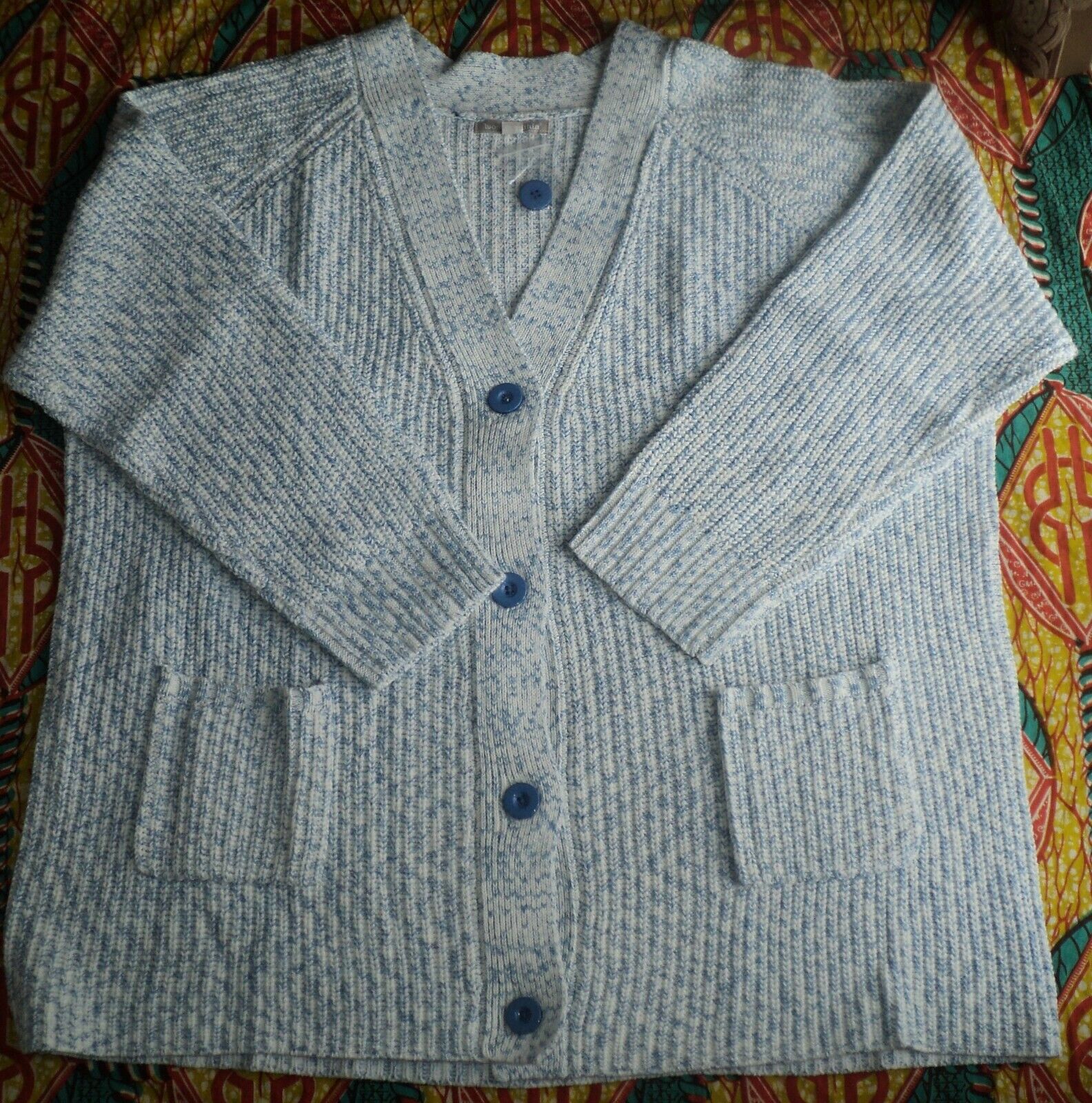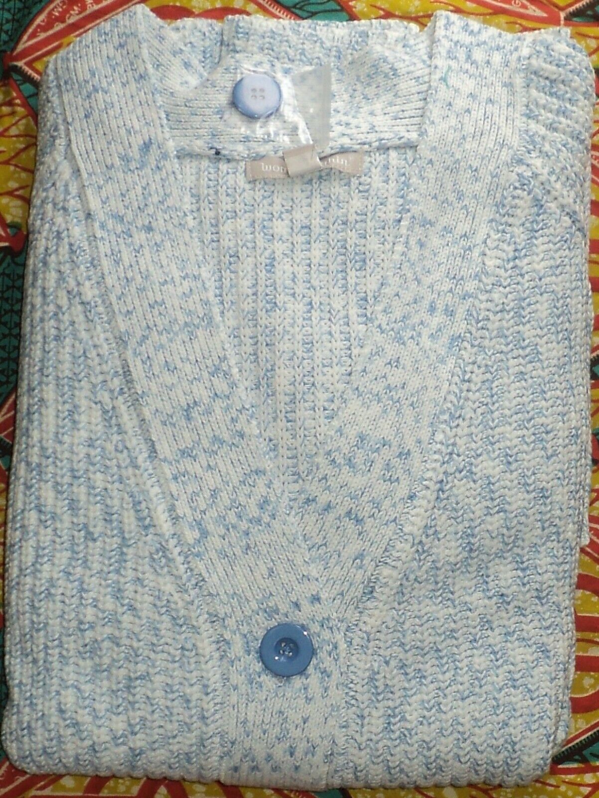 Woman Within Plus Size French Blue Space Dye Shaker Knit Cardigan Size 1X-22/24