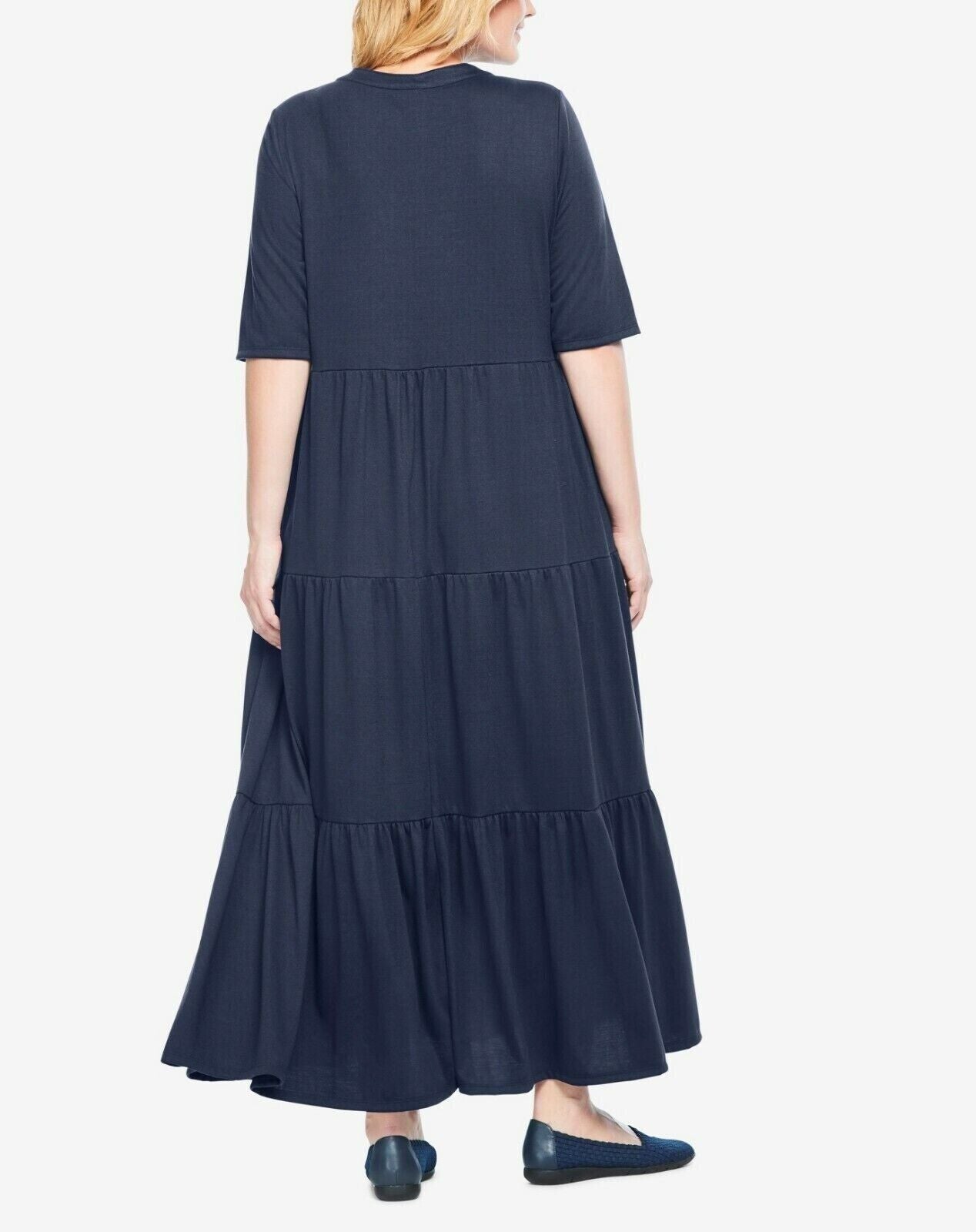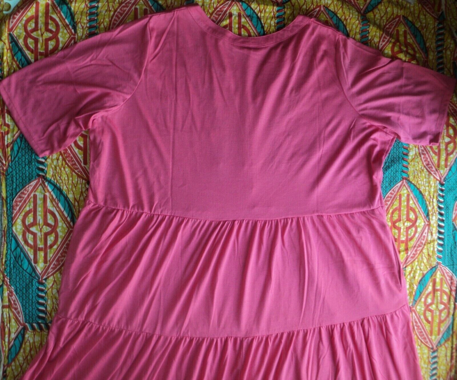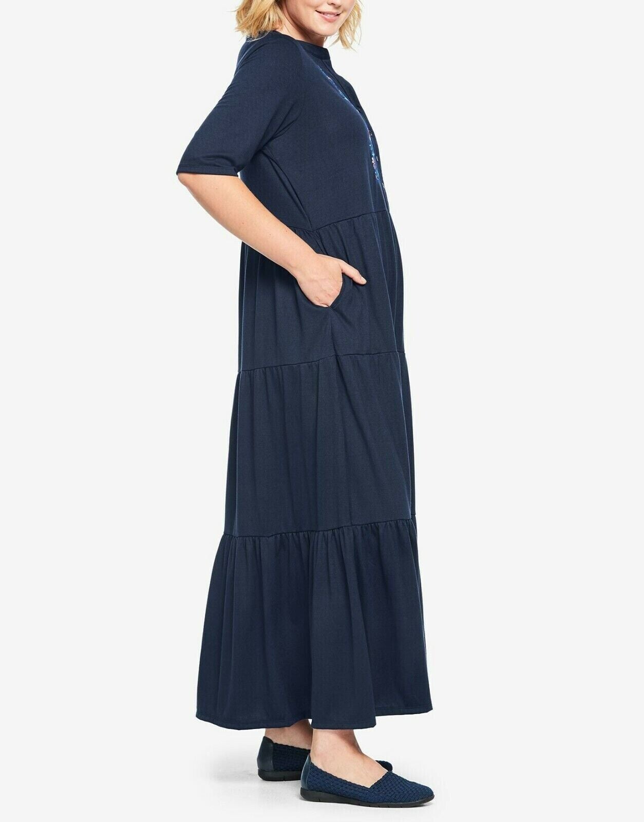 Woman Within Plus Size Rose Pink Embroidered Front Tiered Henley Dress Size 2X